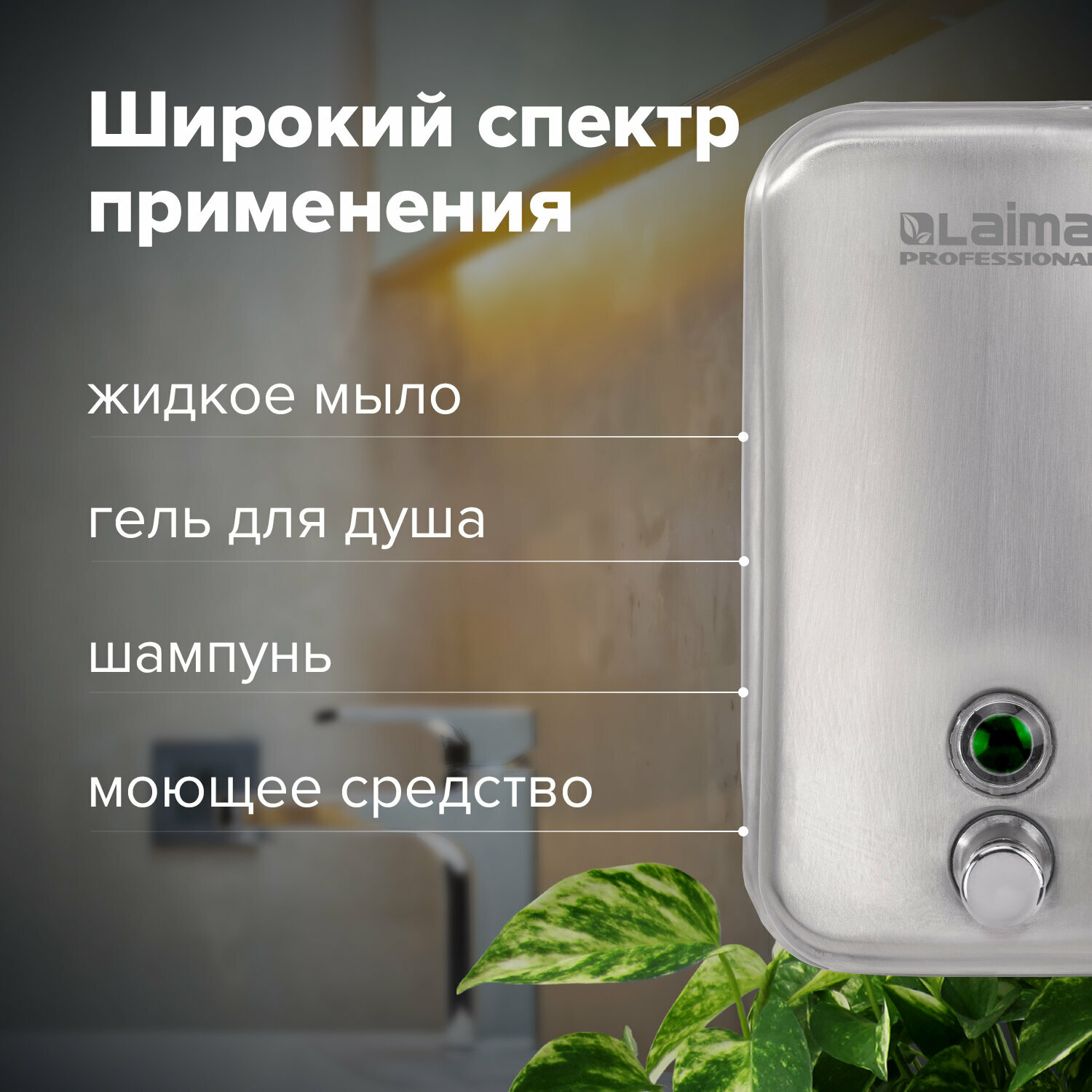 Дозатор для жидкого мыла LAIMA PROFESSIONAL INOX (гарантия 3 года), 1 л, нержавеющая сталь, матовый, 605395