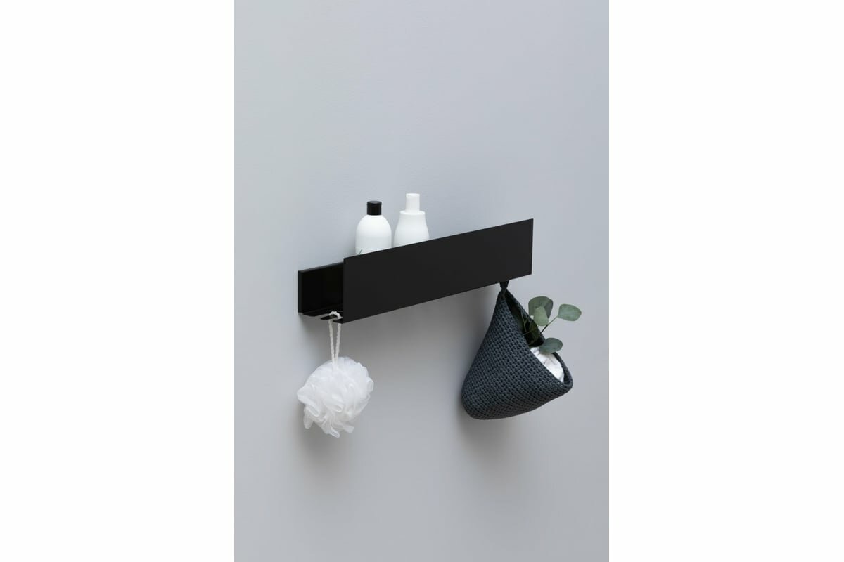 Полка Aquanet Магнум 00302221 70x12 черная матовая, с крючками