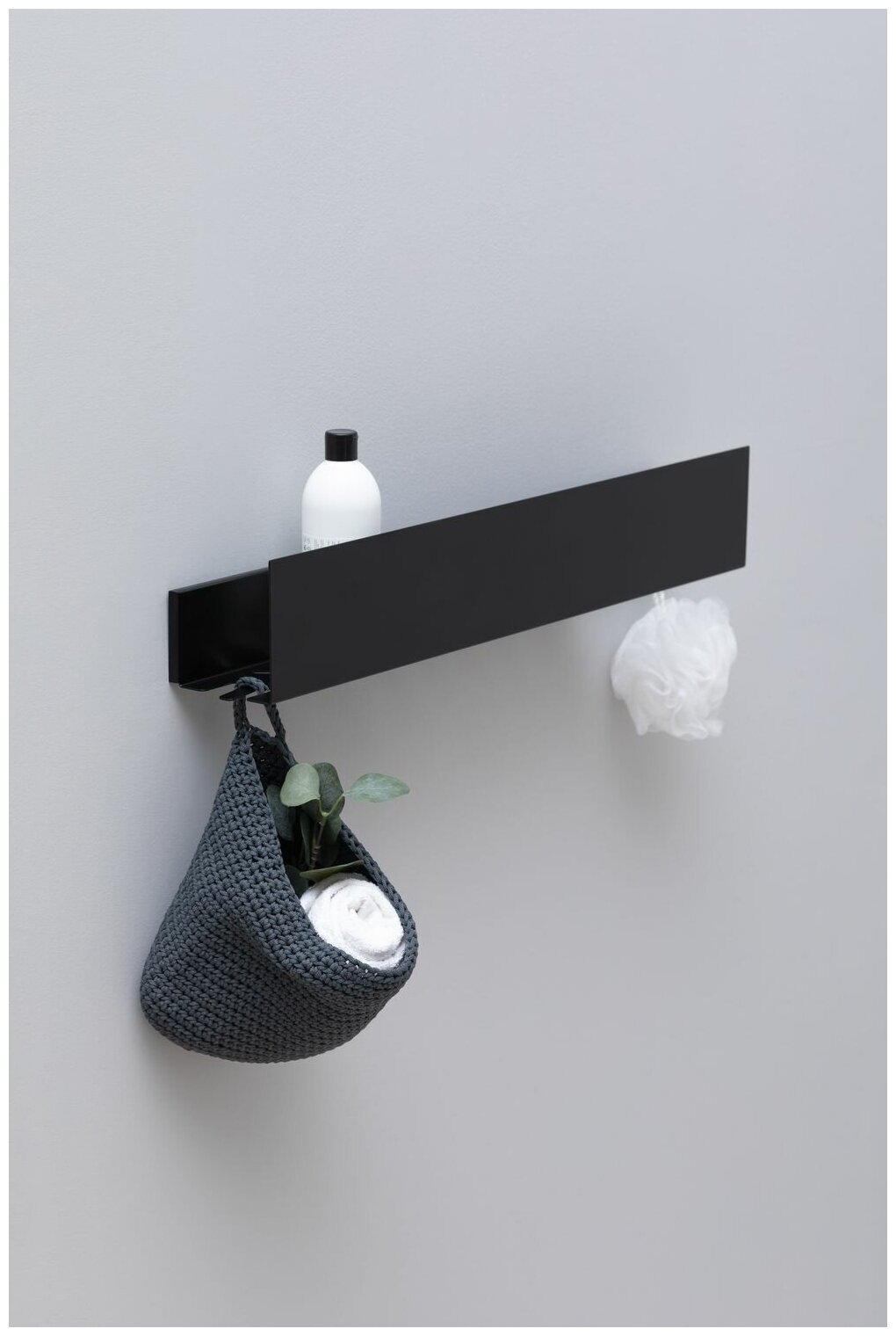 Полка Aquanet Магнум 00302221 70x12 черная матовая, с крючками