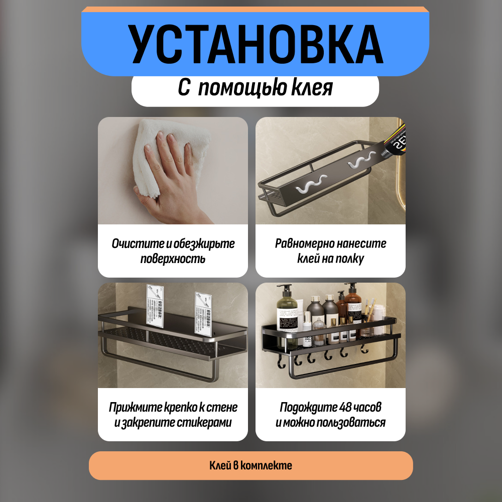 СохранитьНастенная полка в ванную 50 см крючки полотенцесушитель интересное: