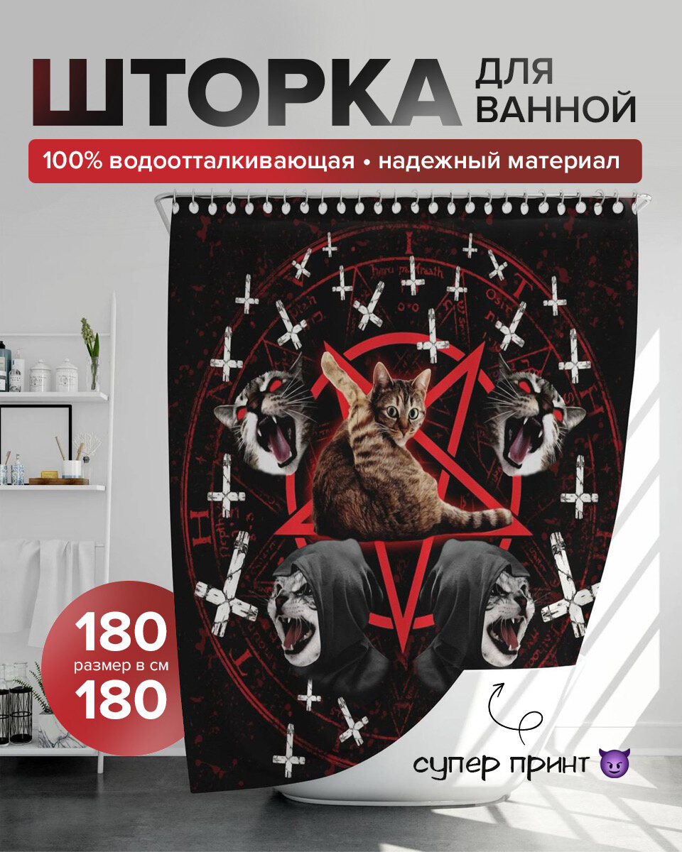 Штора для ванной "Кошачья пентаграмма" 180х180 интересное: