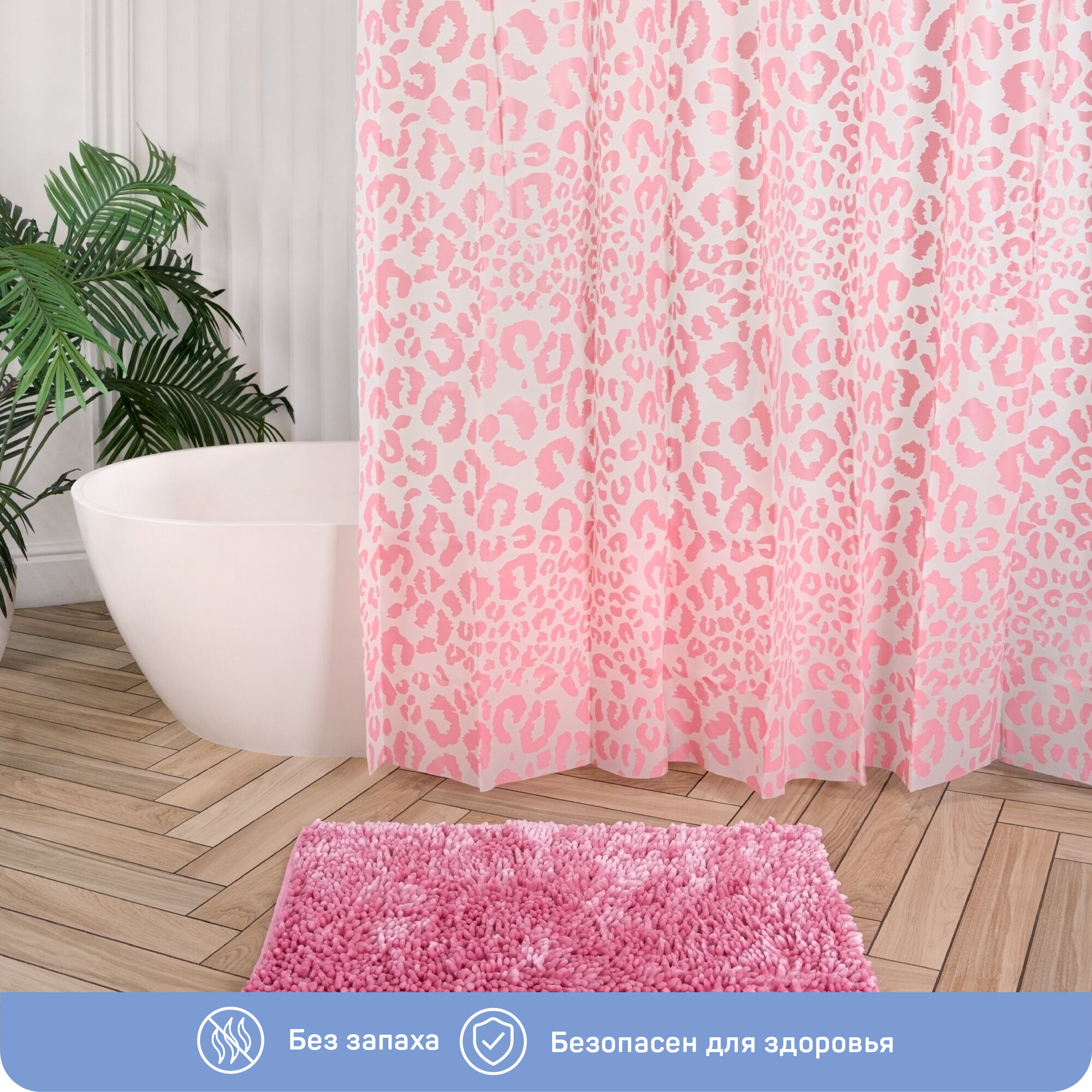 Штора для ванной Леопард 180 (В)*200 (Ш)см, 12 колец, люверсы, PEVA, 75225 Master House (арт. 776599) интересное: