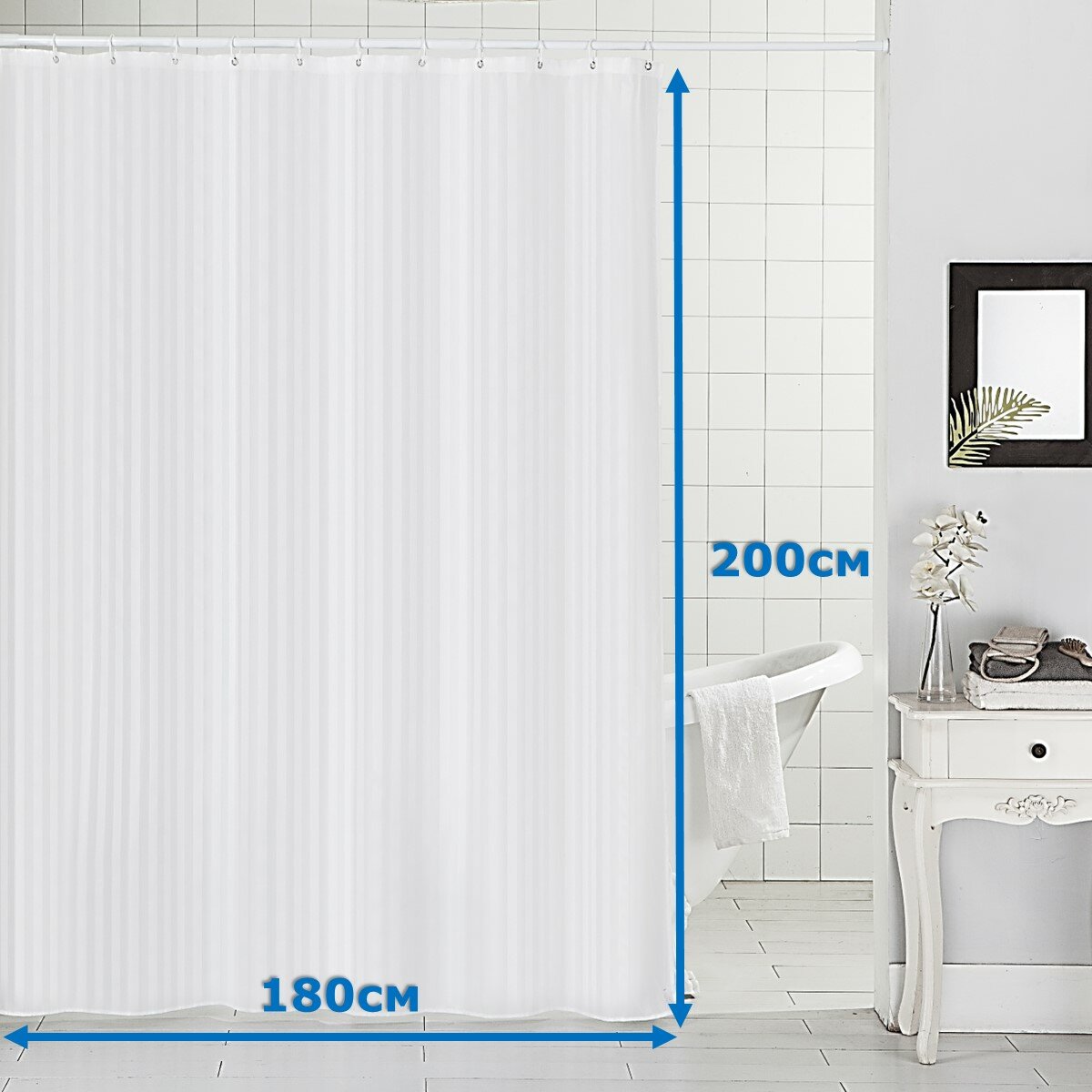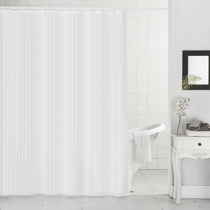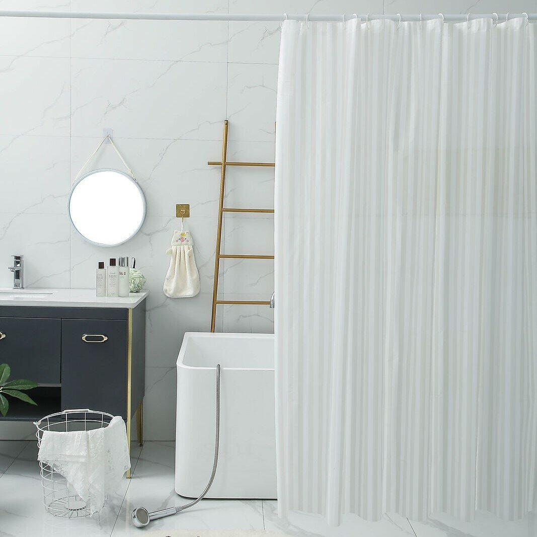 Штора для ванной тканевая Ridberg полиэстер белая 180х200 см, с кольцами / шторка для душа водоотталкивающая интересное: