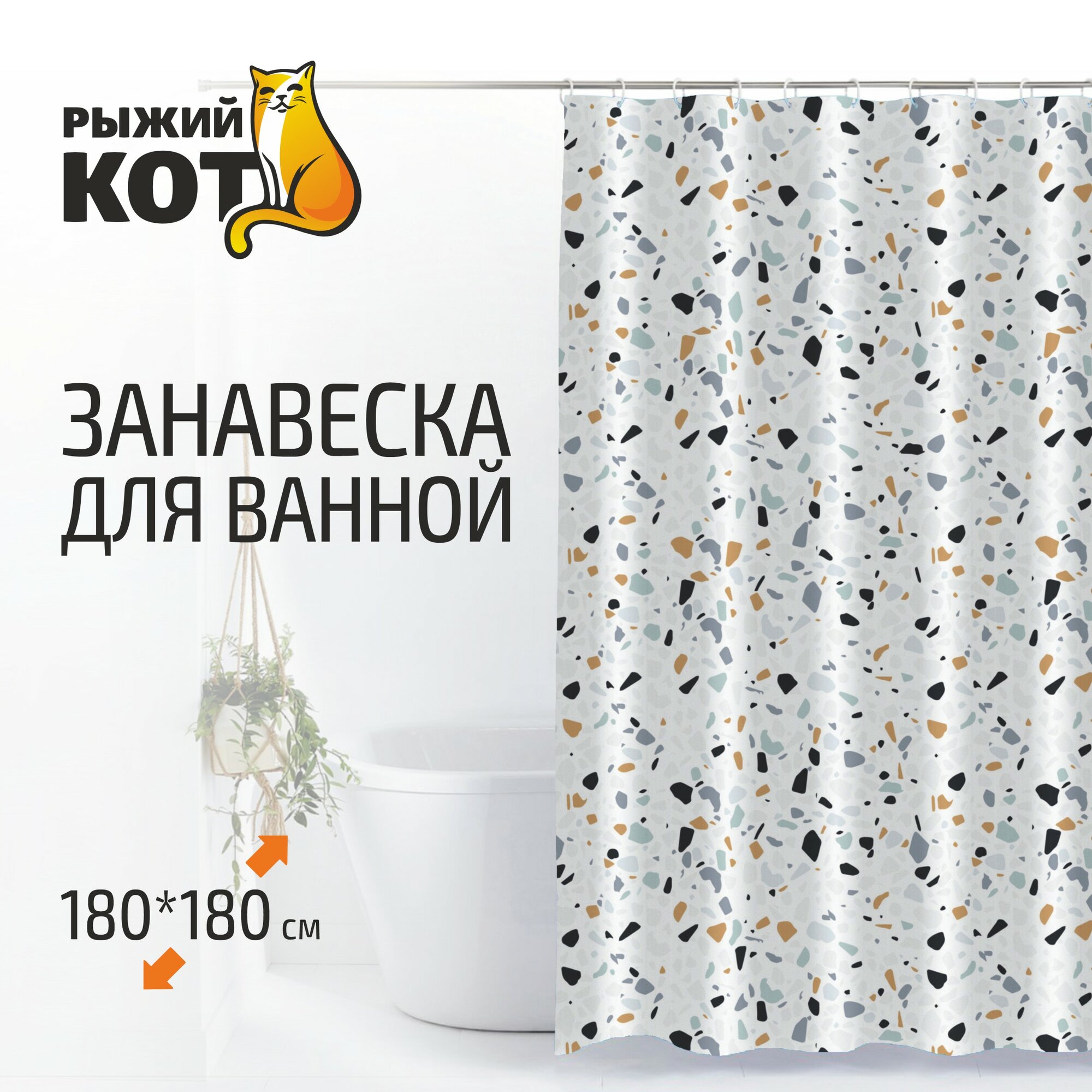 Занавеска для ванной рыжий кот 180х180см полиэстер белая с рисунком
