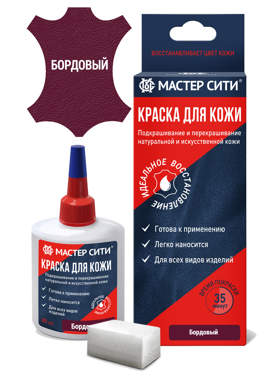 СохранитьКраска для кожи мастер сити, флакон 30 мл. ((502) Бордовый) интересное: