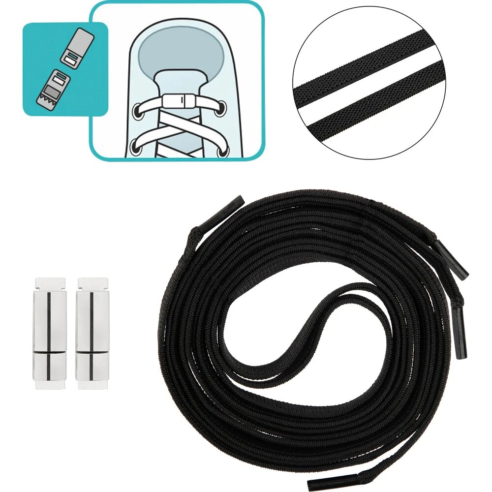 Шнурки с магнитным фиксатором плоские эластичные, длина: 100 см, ширина: 8 мм, цвет черный