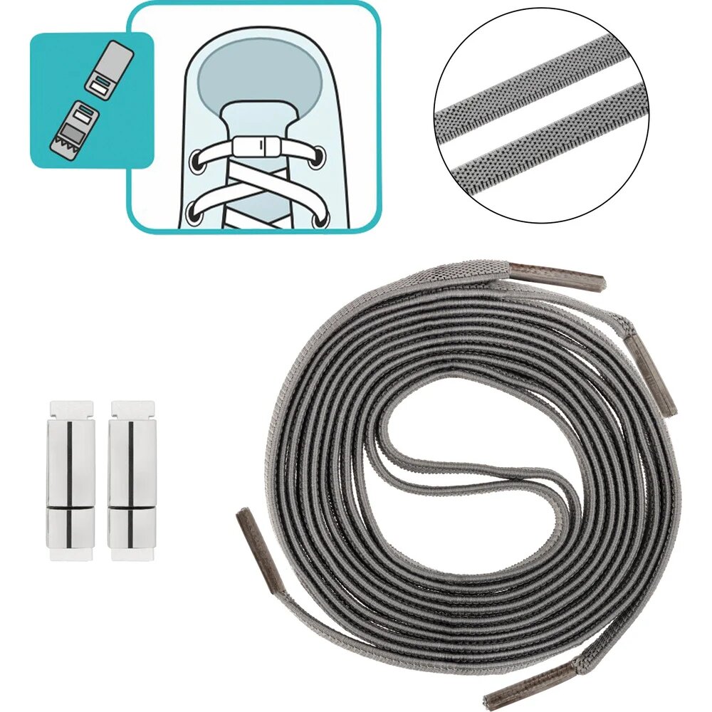 Шнурки с магнитным фиксатором плоские эластичные, цвет серый