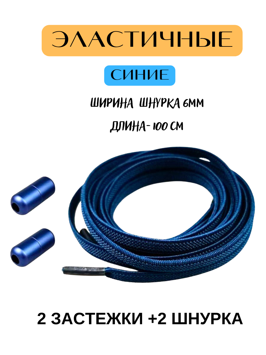 Эластичные шнурки для обуви без завязок синие/ плоские шнypки с металлической застежкой темно синие / ленивые шнурки синие / удобные шнypки синие
