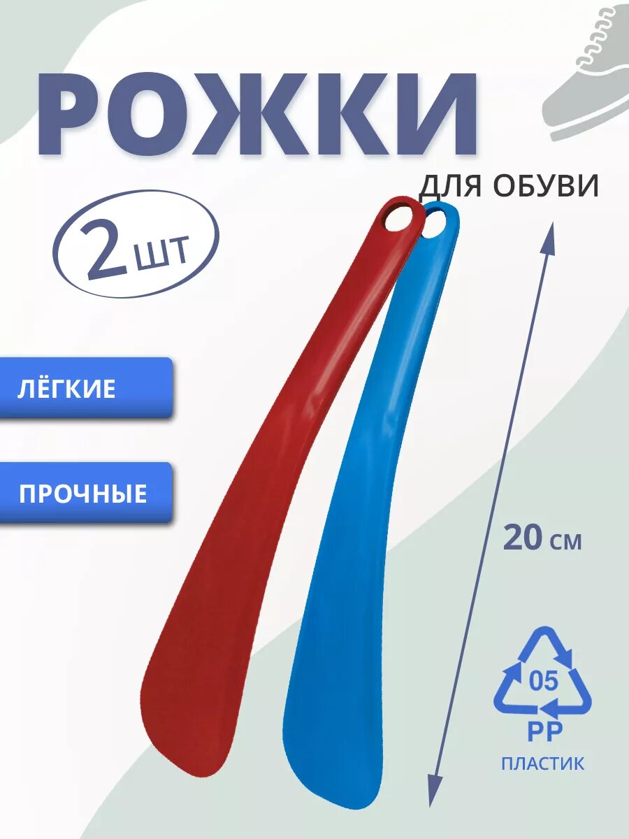 Рожок для обуви изогнутый 20см, 2шт. цвет красный, синий интересное: