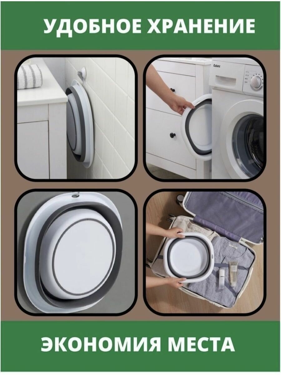 Складной силиконовый хозяйственный таз 10л. Цвет серый