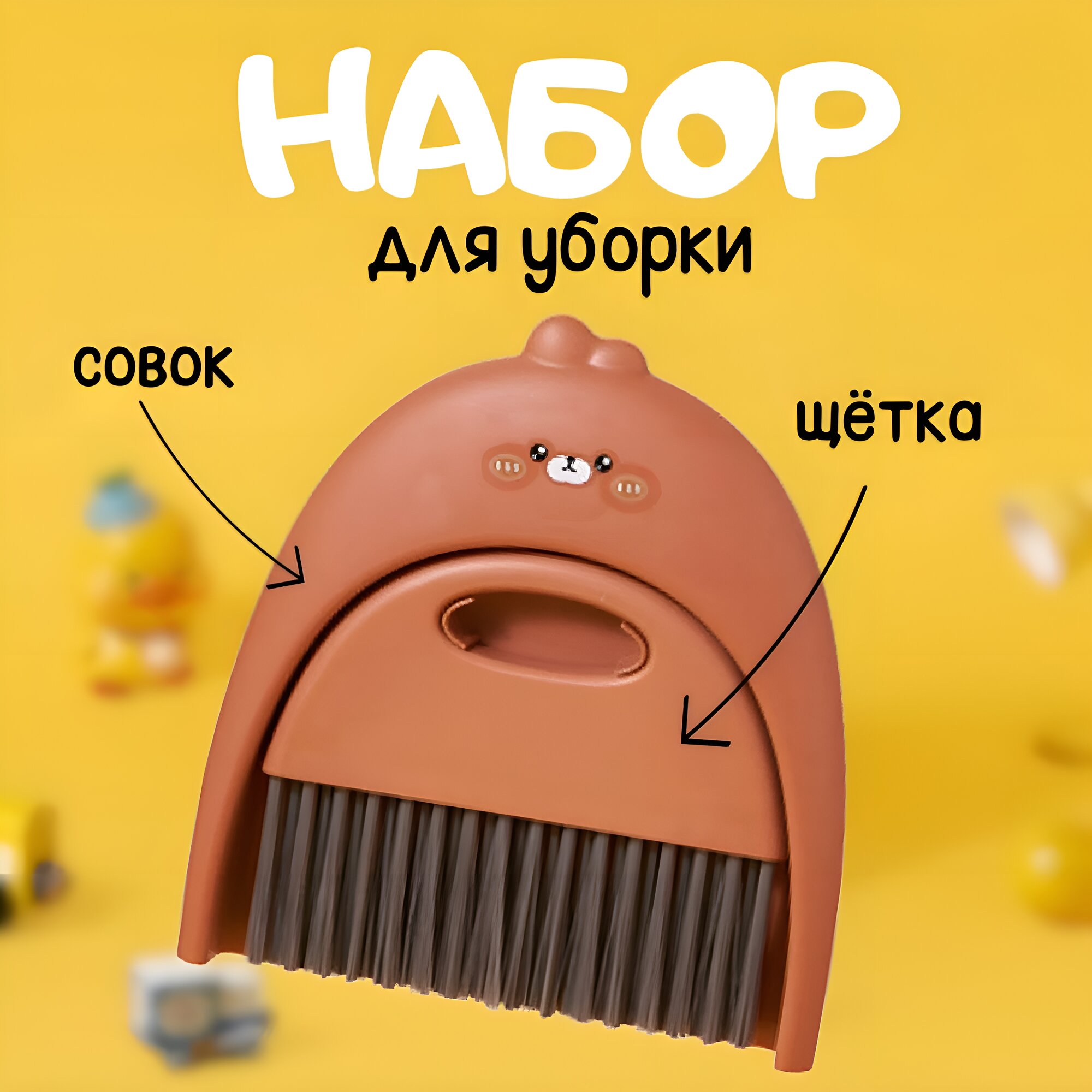 Щетка для уборки / веник с совком "Bear", brow, 18 х 18х 5 см интересное: