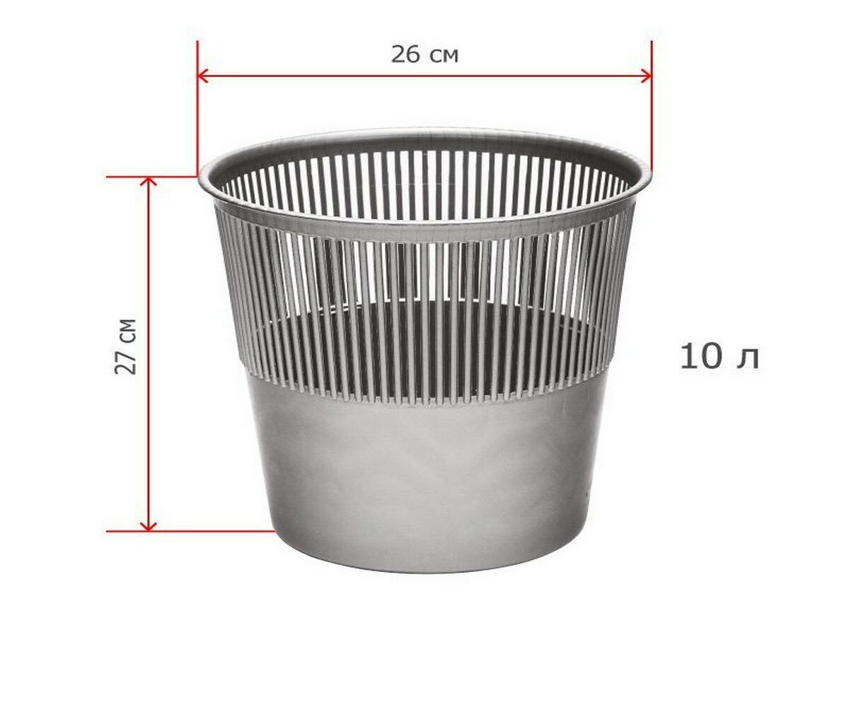 Комплект 6 штук, Корзина офисная 10 л пластик, серая