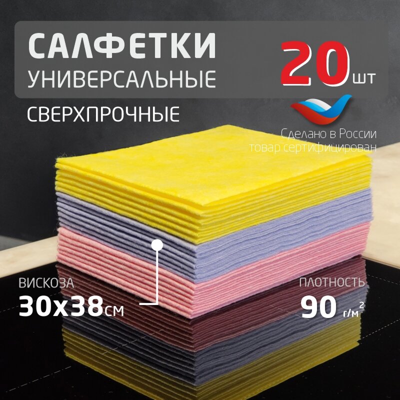"Универсальные салфетки для уборки" из вискозы, 20шт, 30*38 интересное: