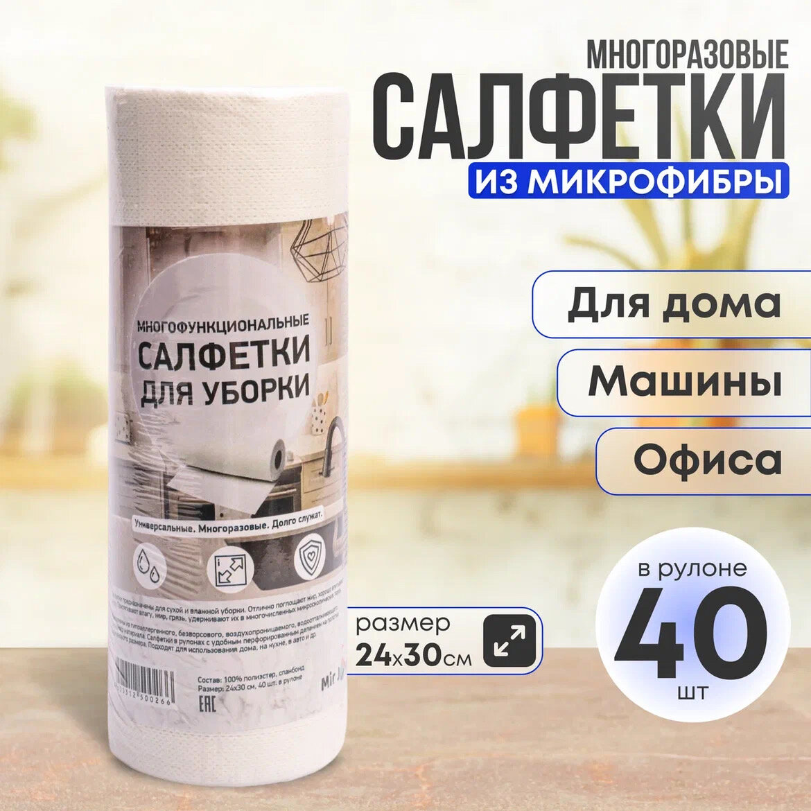"Универсальные салфетки белые для уборки" - 40 штук в рулоне, многоразовые, из микрофибры интересное: