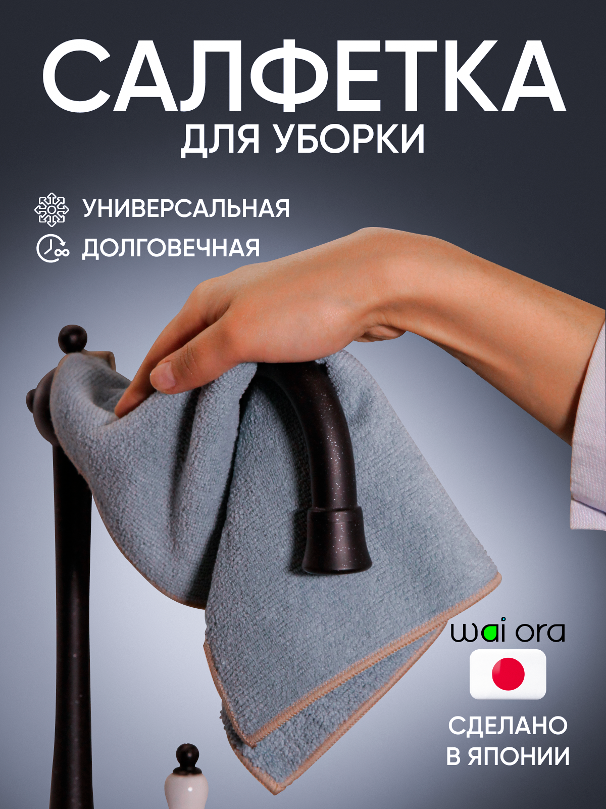 Универсальная салфетка Wai Ora для уборки зеркал и стёкол безворосвая