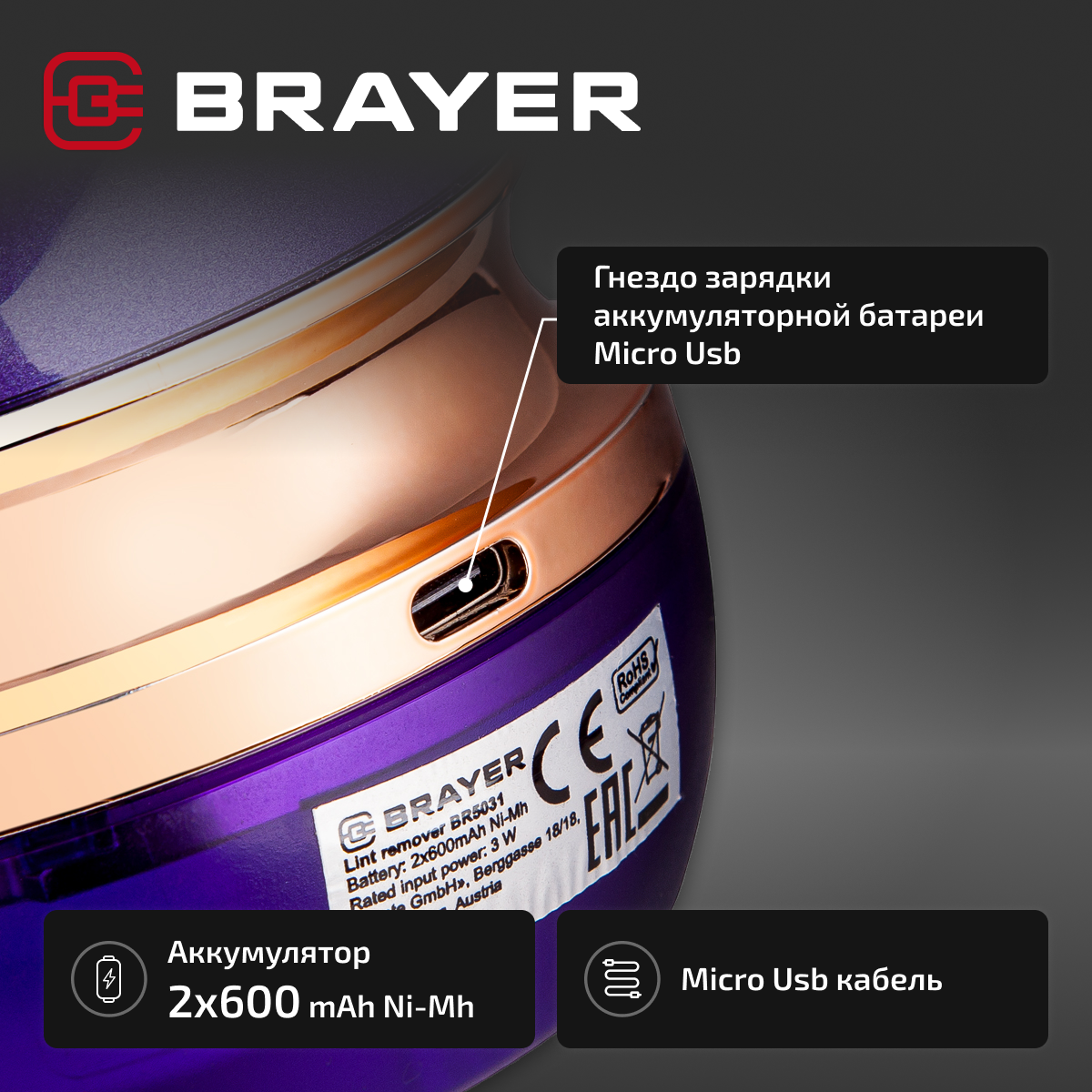 Машинка для удаления катышек и ворса на одежде Brayer BR5031, фиолетовая интересное: