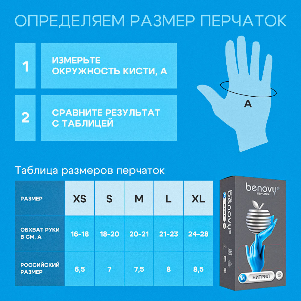 Ниже Вы можете прочитать отзывы на Перчатки нитриловые Benovy с текстурой на пальцах голубые, размер М, (100 шт / 50 пар), ознакомится с подробными характеристиками, посмотреть интересные обзоры и фотографии на Перчатки нитриловые Benovy с текстурой на пальцах голубые, размер М, (100 шт / 50 пар).