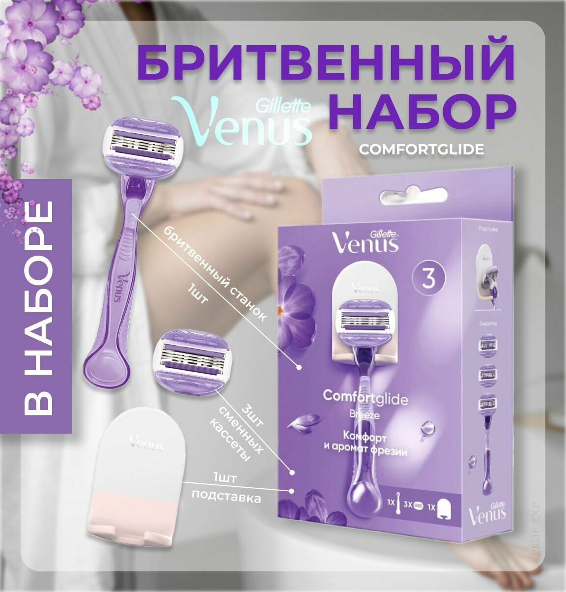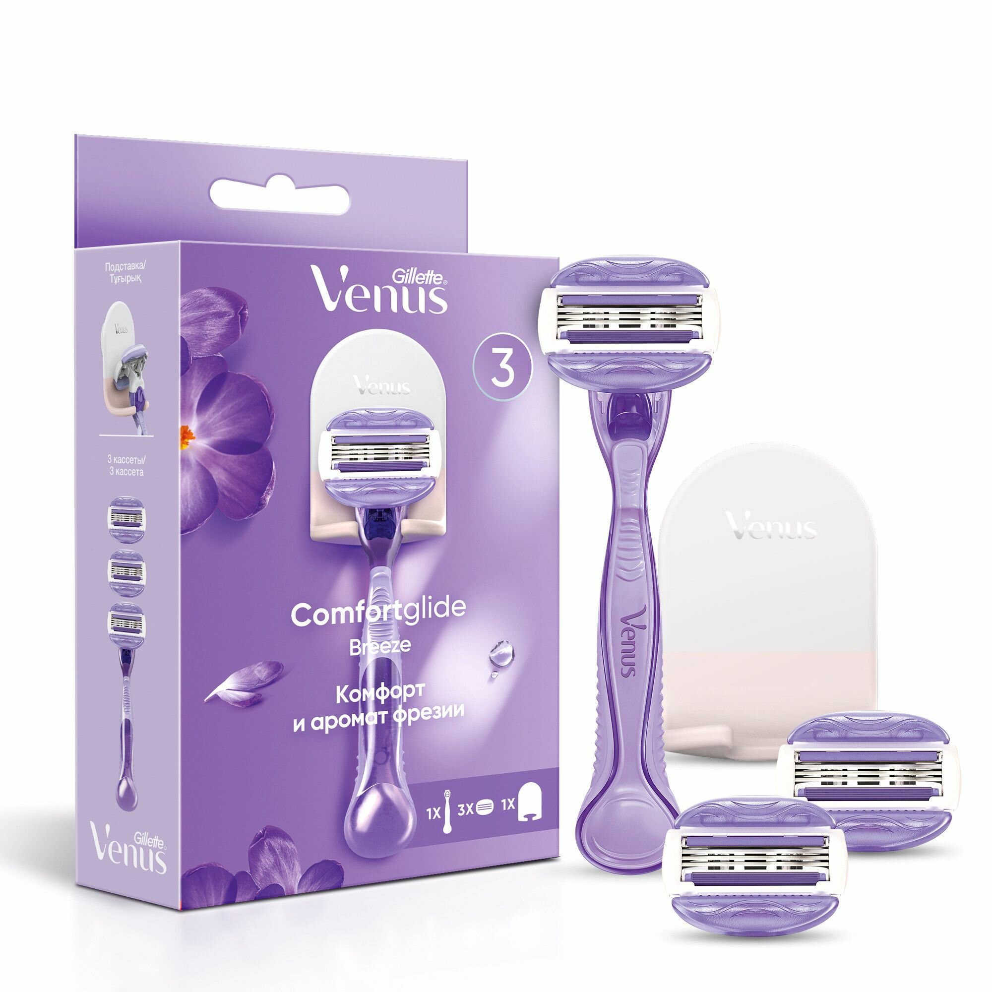 Купить Женская бритва Venus Comfort Glide с 3 сменными кассетами и подставкой