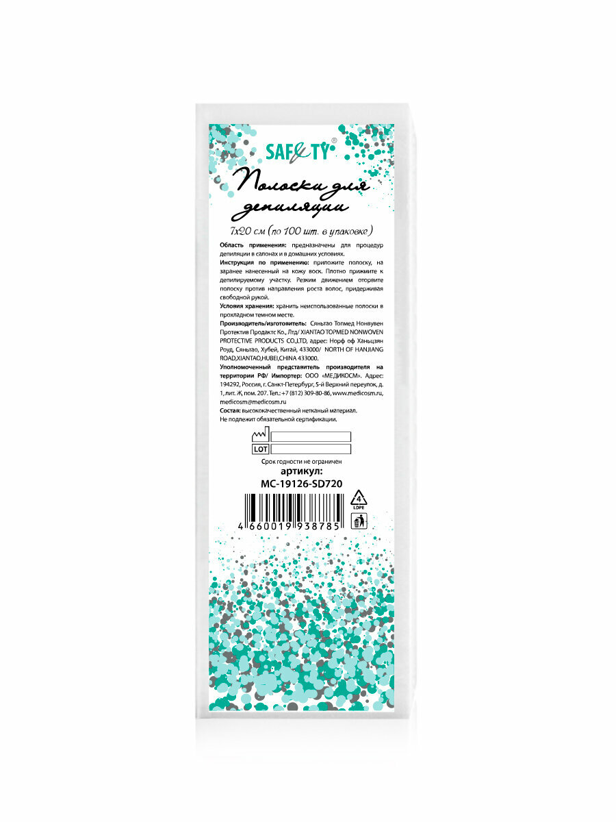 Полоски для депиляции белые 7х20 см SAFETY (полиэстер), 100 шт/упк интересное: