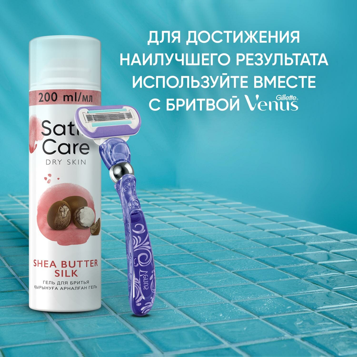 Гель для бритья Gillette Satin Care Shea Butter Silk, для сухой кожи, 200 мл (женс) .
