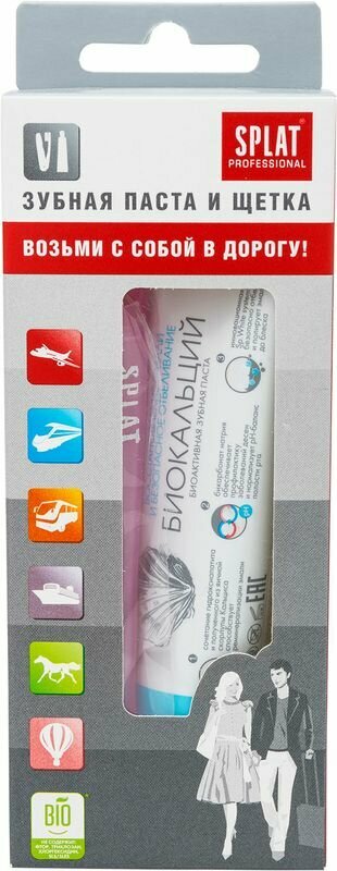 Дорожный набор: зубная паста "Биокальций", 40 мл; зубная щетка, SPLAT Professional