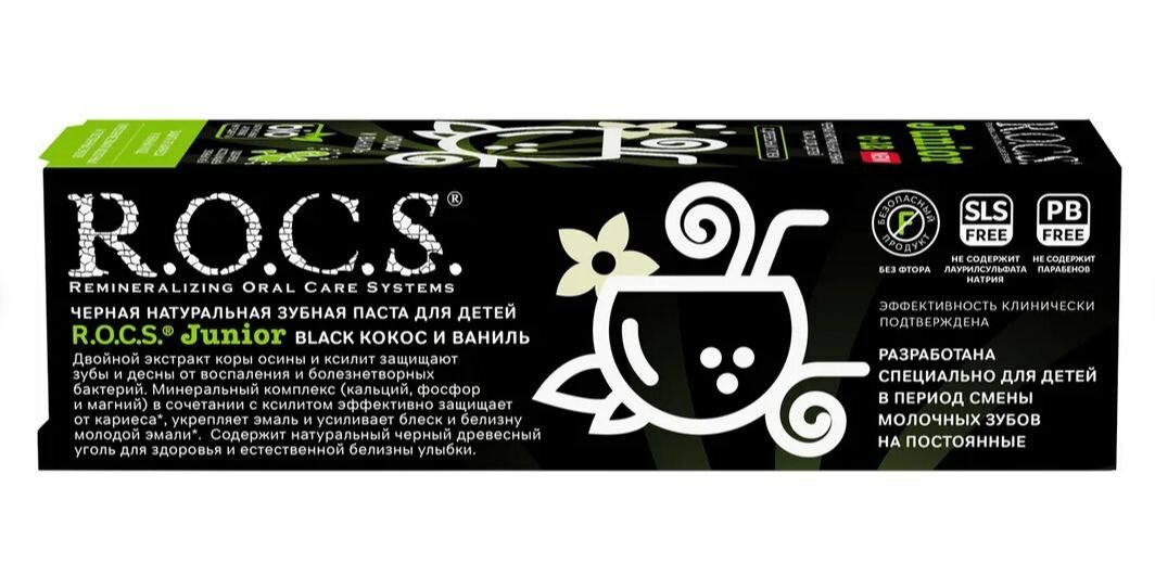 Зубная паста R.O.C.S. Junior Black Кокос и Ваниль 6-12 лет, 60 мл интересное: