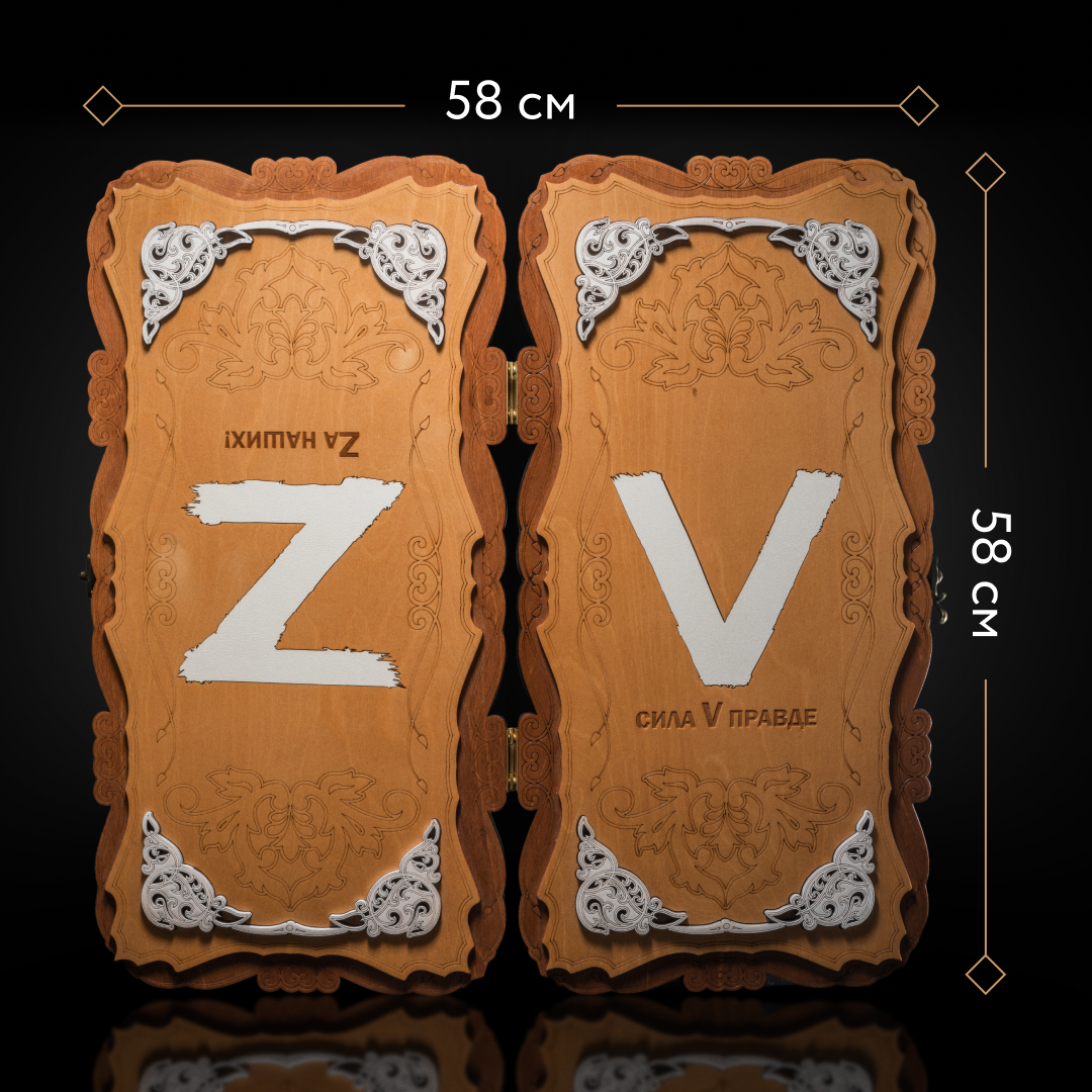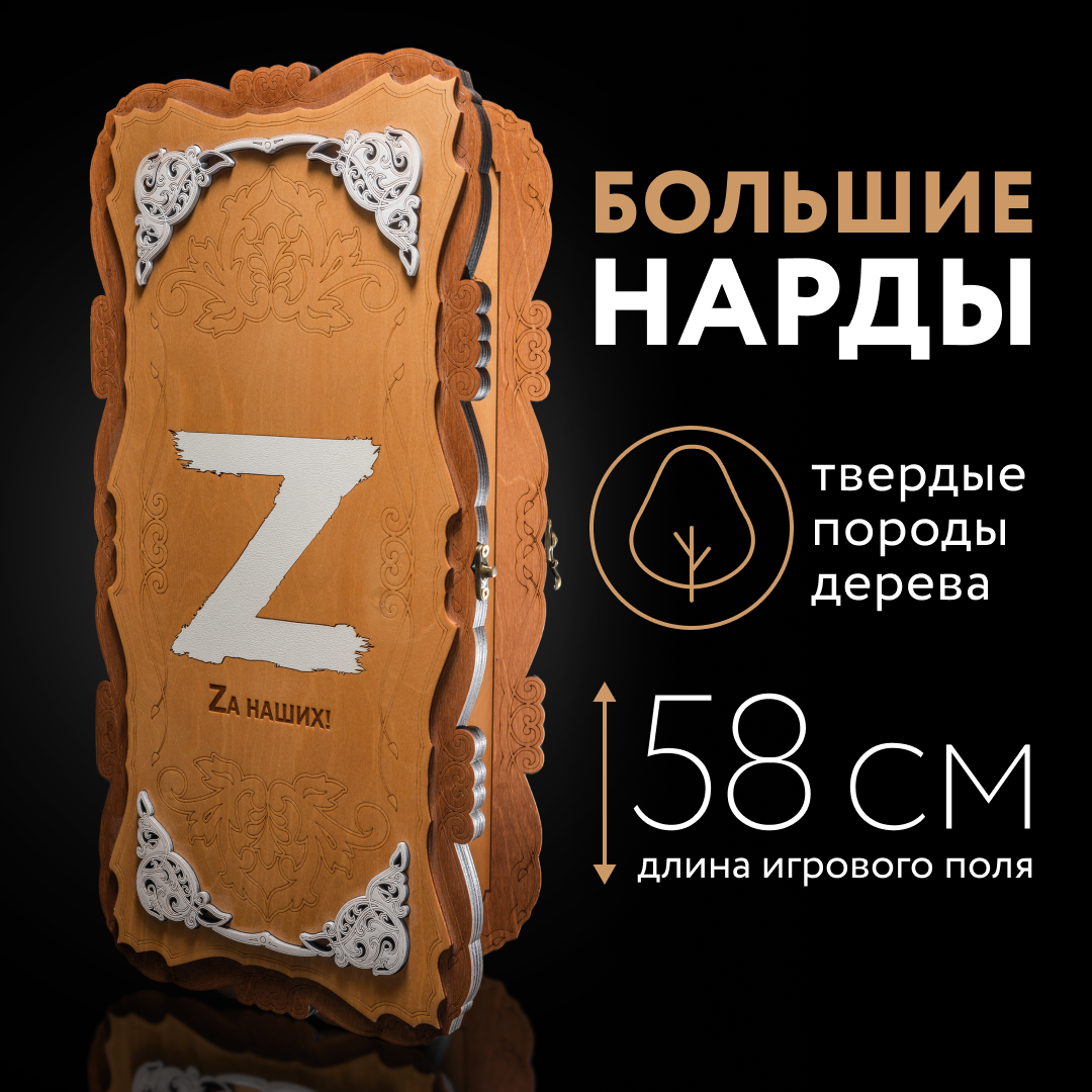 Купить Нарды "За наших" 60x40 см, дерево, 30 фишек, 2 кубика, доска складная, ручная работа