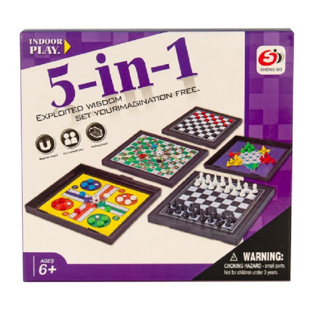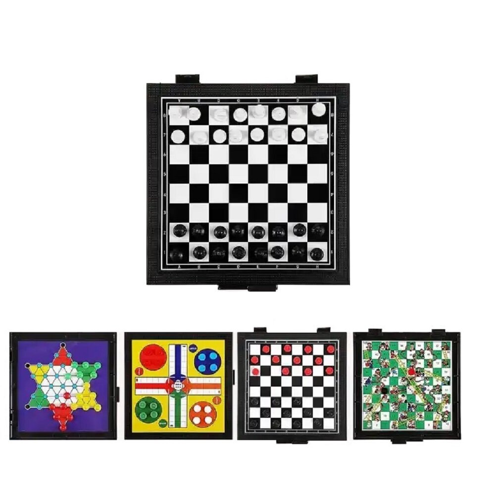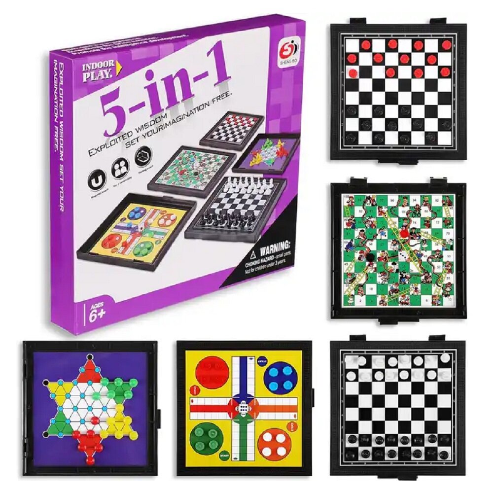 Купить Детская настольная игра 5 в 1: шахматы, шашки, китайские шашки, змейки и лестницы, лудо, магнитное игровое поле 12,8 х 12,8 см, игра в дорогу