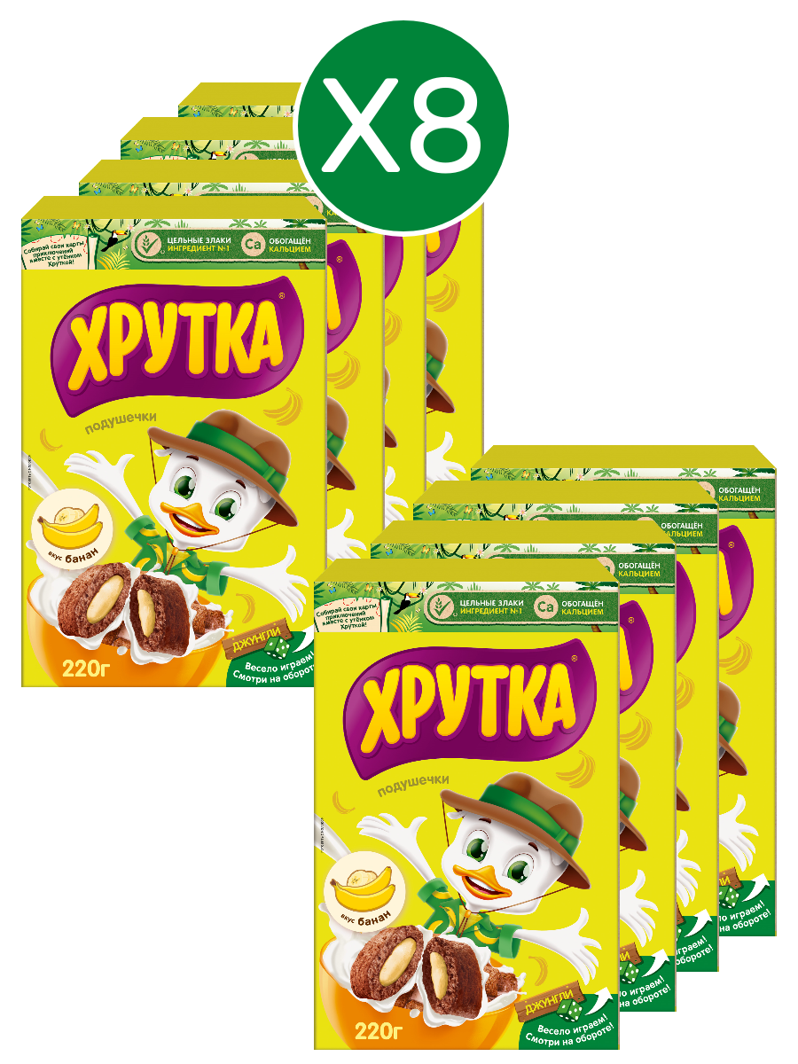 Готовый завтрак "Хрутка", Злаковые подушечки с начинкой со вкусом банана, обогащенные кальцием, 220г 8 шт