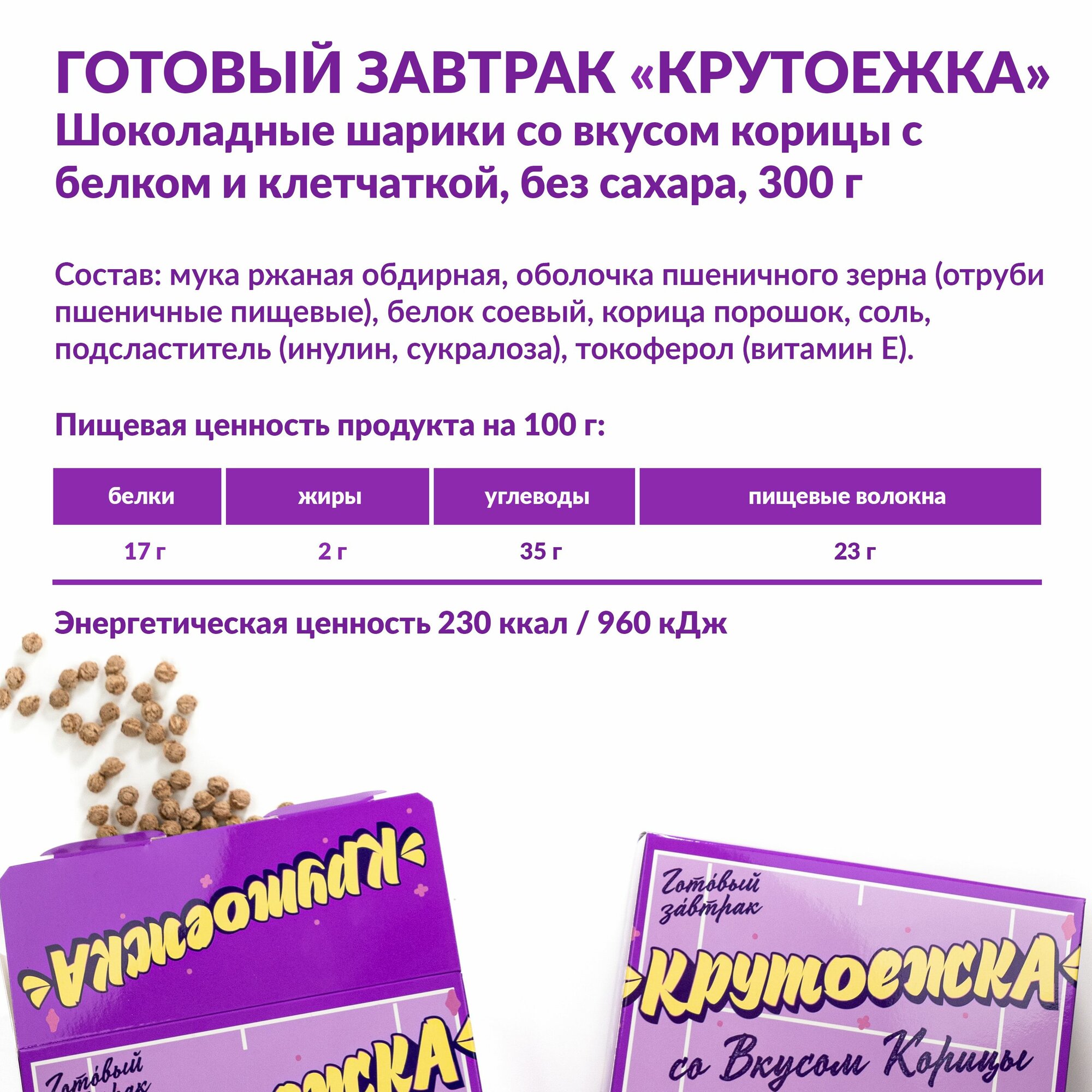 Готовый завтрак Крутоежка шарики со вкусом корицы с белком и клетчаткой, без сахара, 300 г