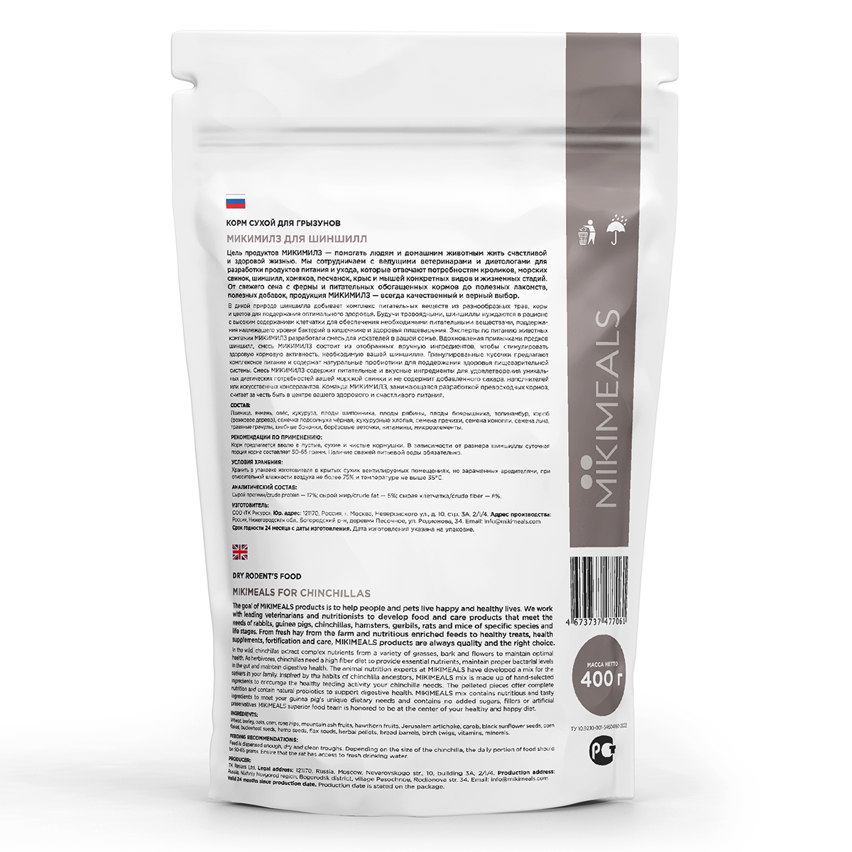 Ниже Вы можете прочитать отзывы на Микимилс (Mikimeals) 1уп 400гр корм для шиншилл, ознакомится с подробными характеристиками, посмотреть интересные обзоры и фотографии на Микимилс (Mikimeals) 1уп 400гр корм для шиншилл.