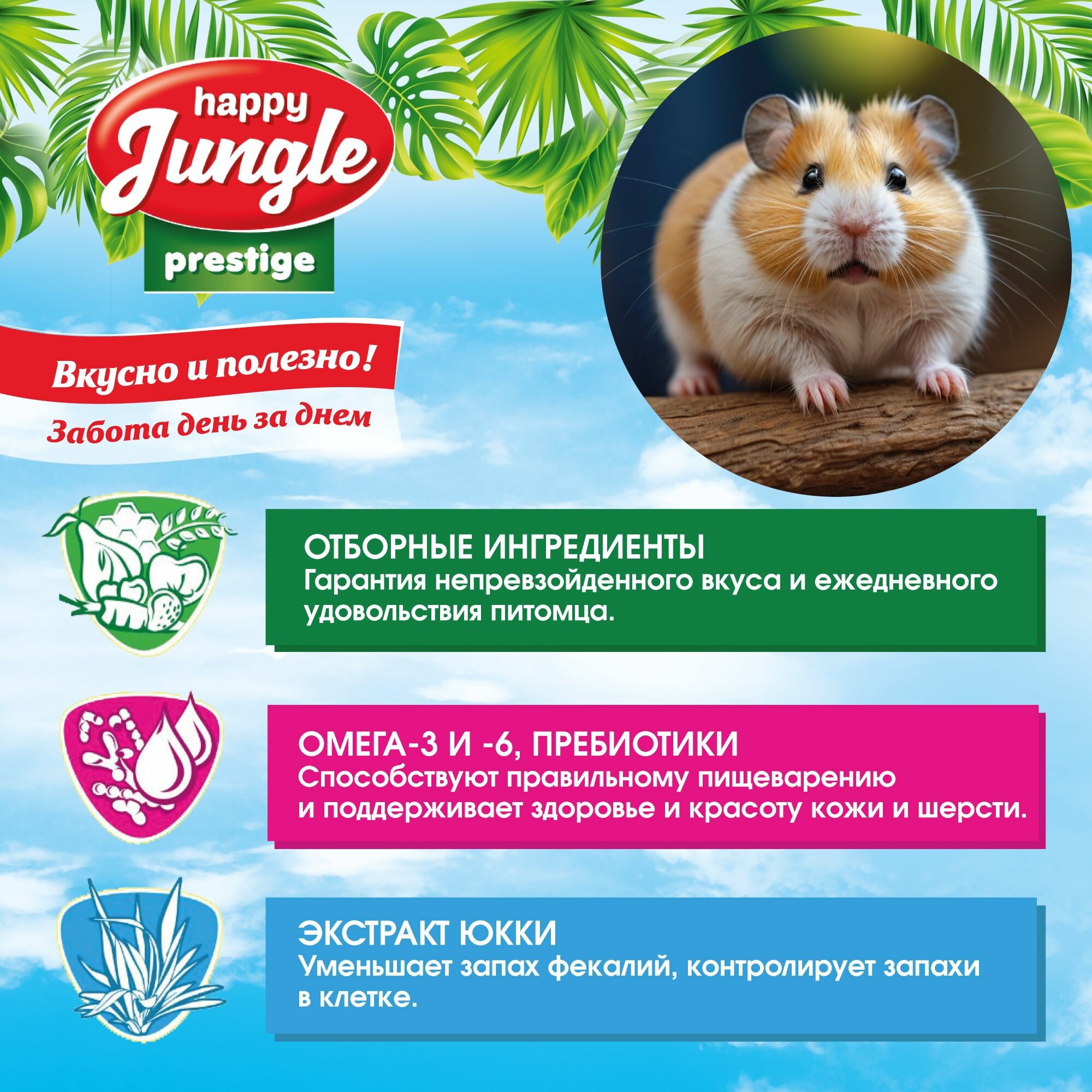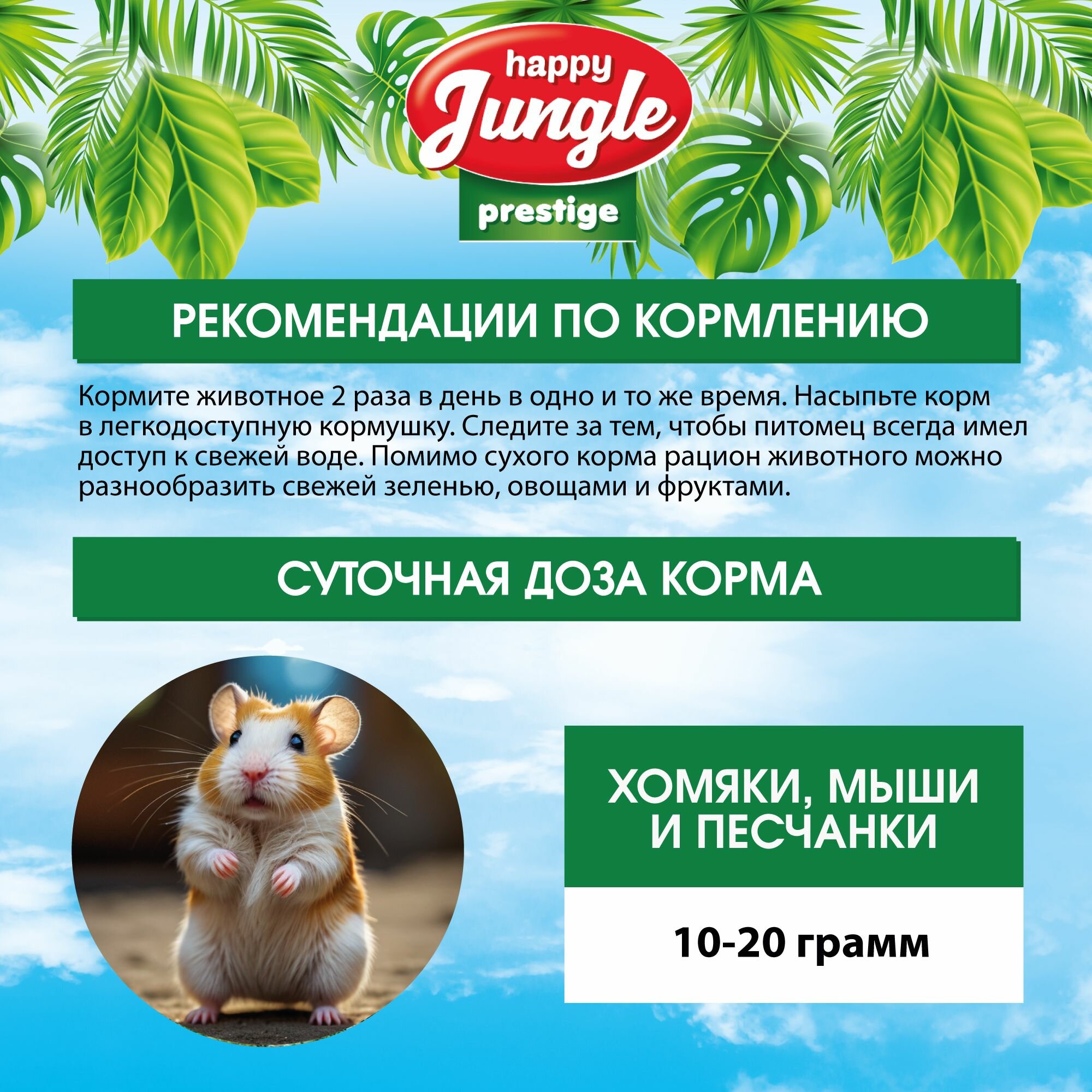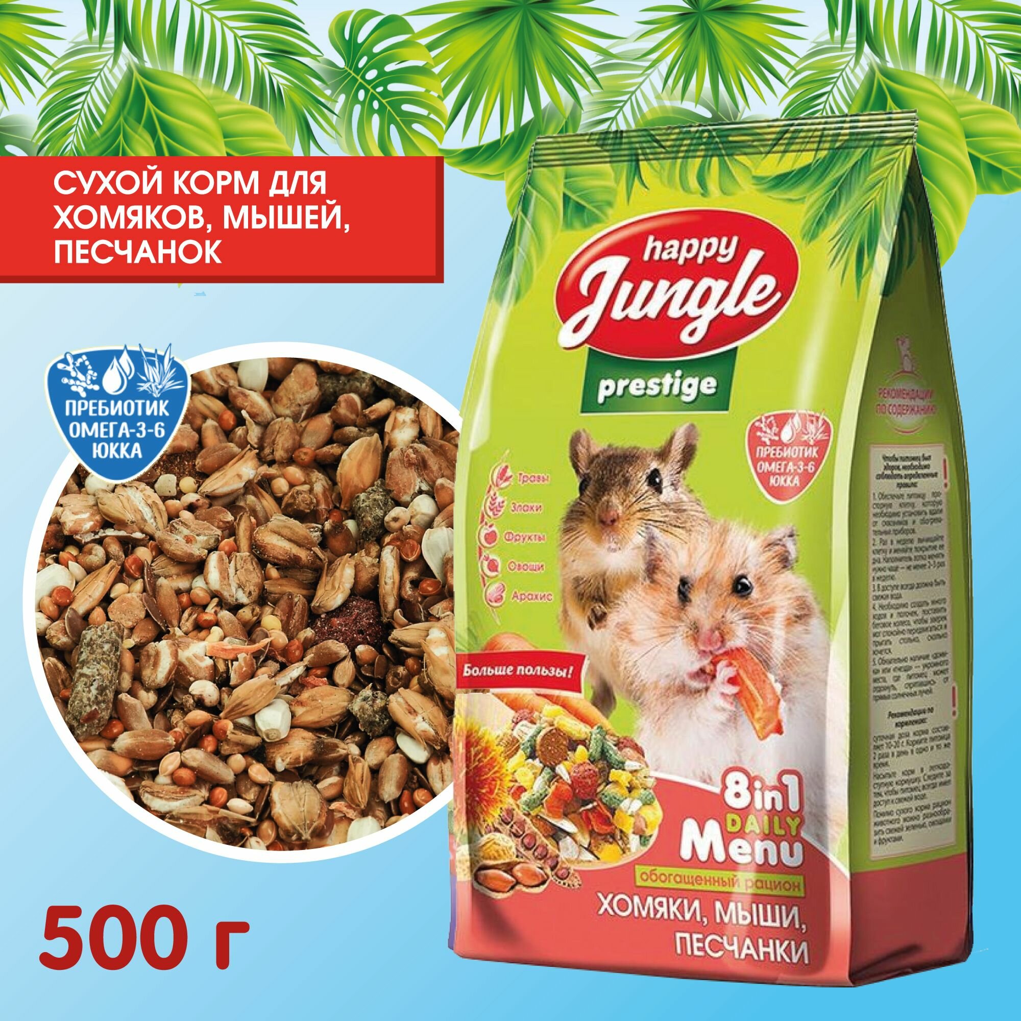 Корм для хомяков, мышей, песчанок Happy Jungle Престиж сухой 500 г интересное:
