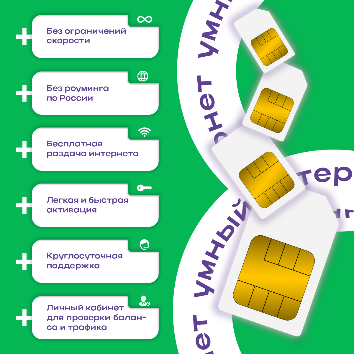 SIM-карта Безлимит по РФ с Wi Fi, для всех устройств, 990 р / в месяц/ сим карта