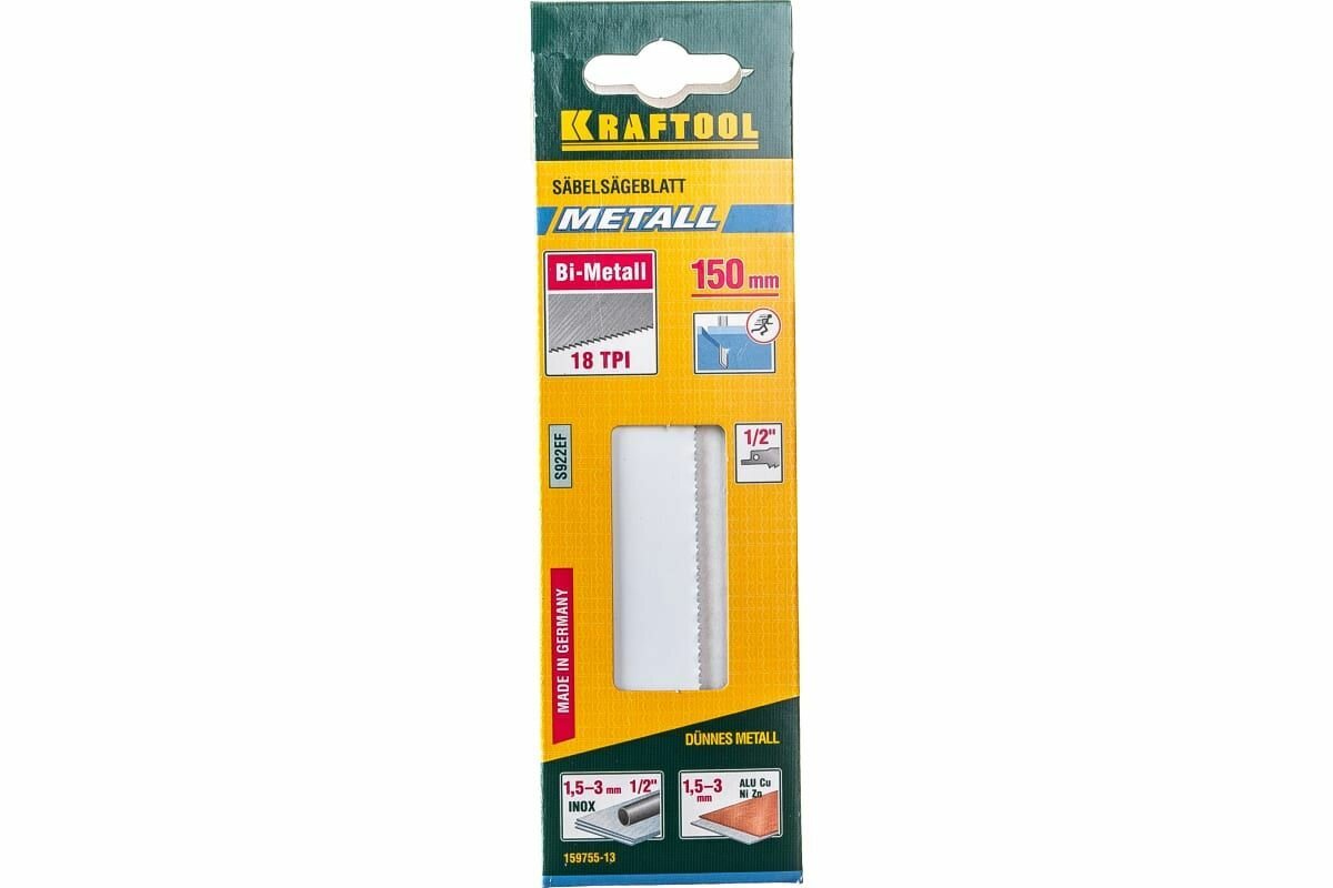 Купить KRAFTOOL Полотно KRAFTOOL "INDUSTRIE QUALITAT", S922EF, для эл/ножовки, Bi-Metall, по металлу, шаг 1,4мм, 130мм, ( 159755-13 )