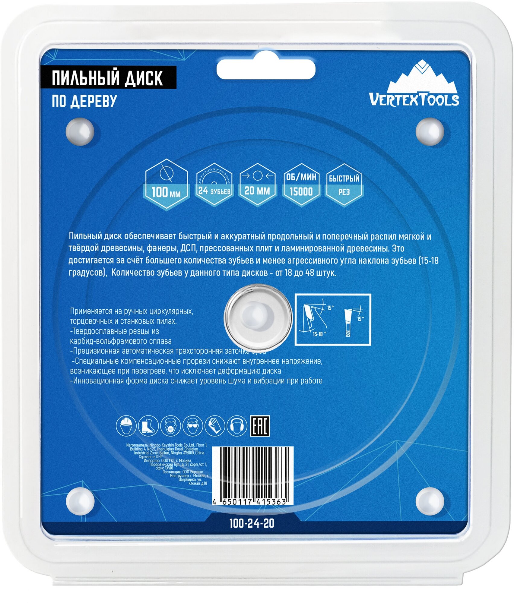Пильный диск по дереву VertexTools 100Х24ТХ20