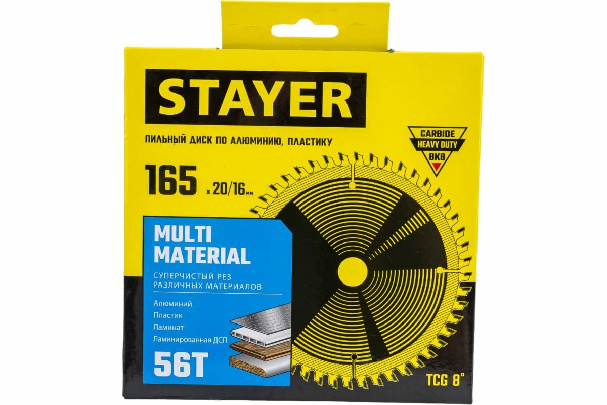 Купить STAYER MULTI MATERIAL 165 x 20/16мм 56T, диск пильный по алюминию, супер чистый рез