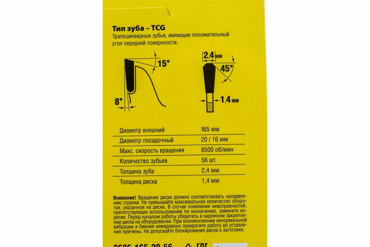 | Диаметр диска | 165 мм |