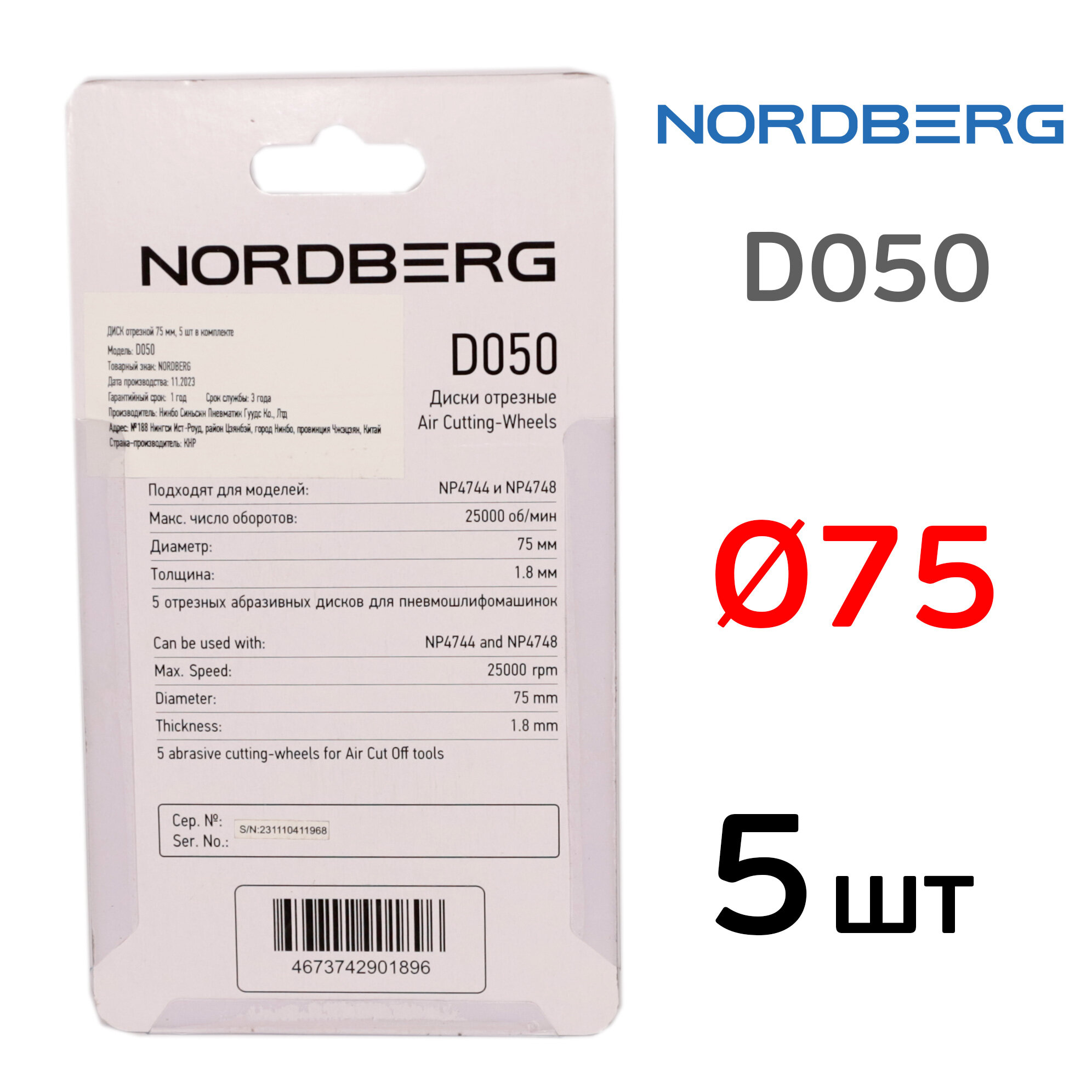 Купить Круг отрезной 75х1.8мм (5шт) по металлу Nordberg для пневмоотрезной машинки