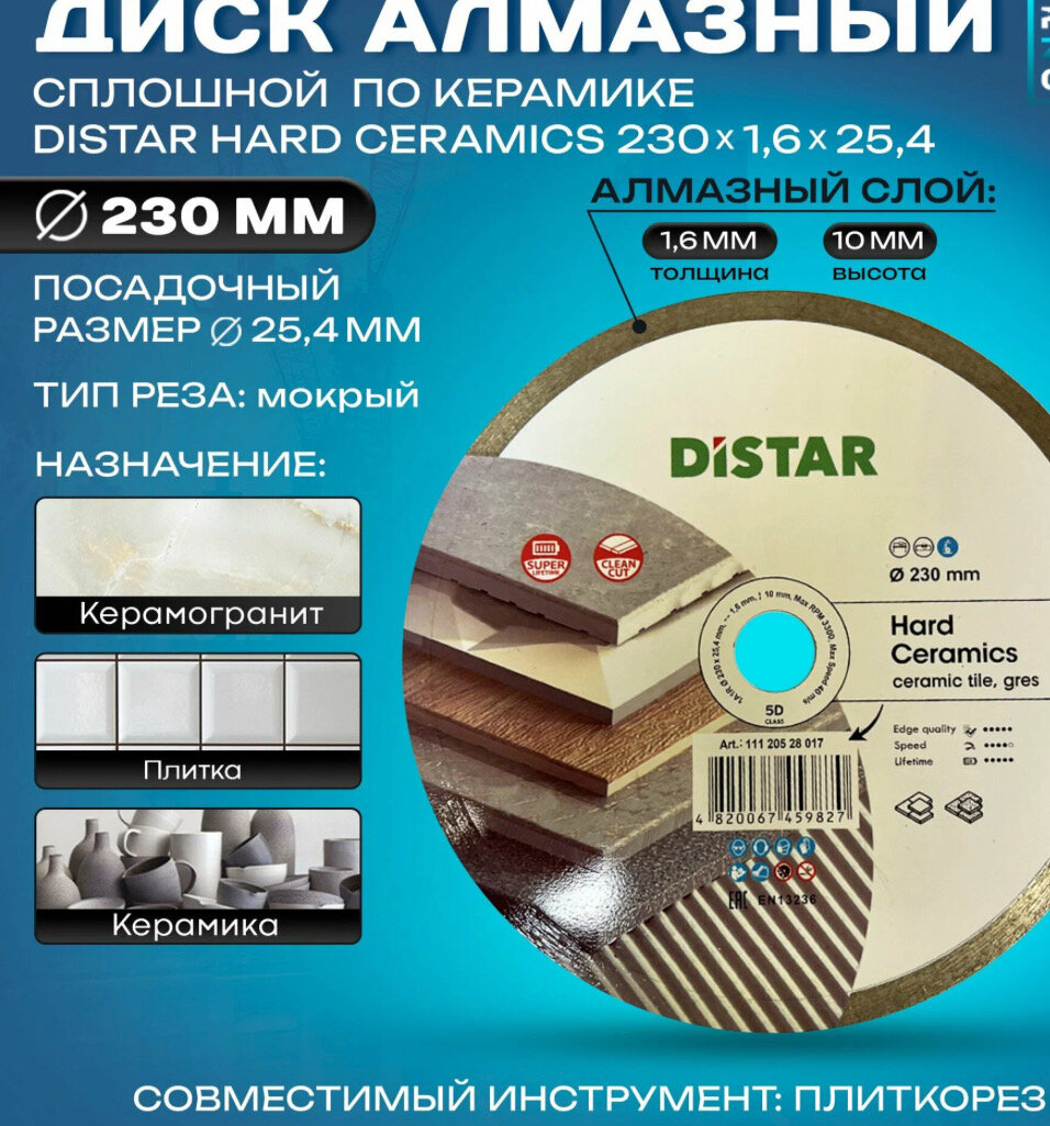 Диск алмазный отрезной Di-Star 1A1R Hard Ceramics 11120048017, 230 мм, 1 шт. интересное:
