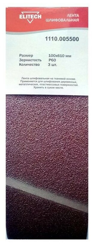 Лента шлифовальная Elitech 1110.005100, 100х610 мм, Р100, 3 шт. в упаковке