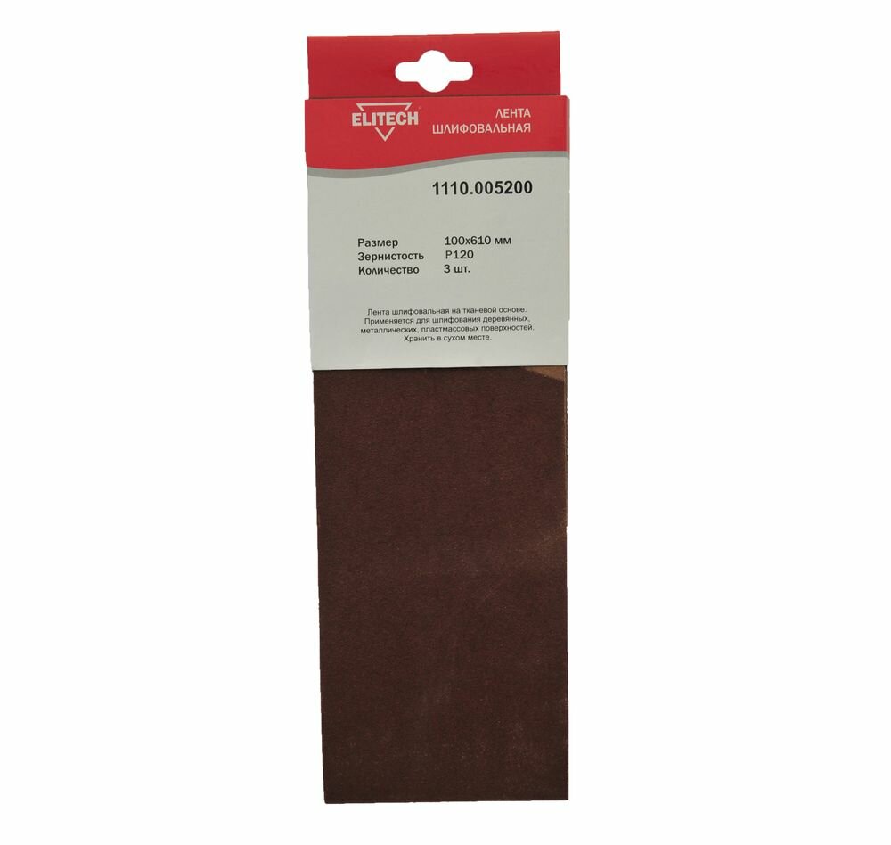 Лента шлифовальная Elitech 1110.005100, 100х610 мм, Р100, 3 шт. в упаковке
