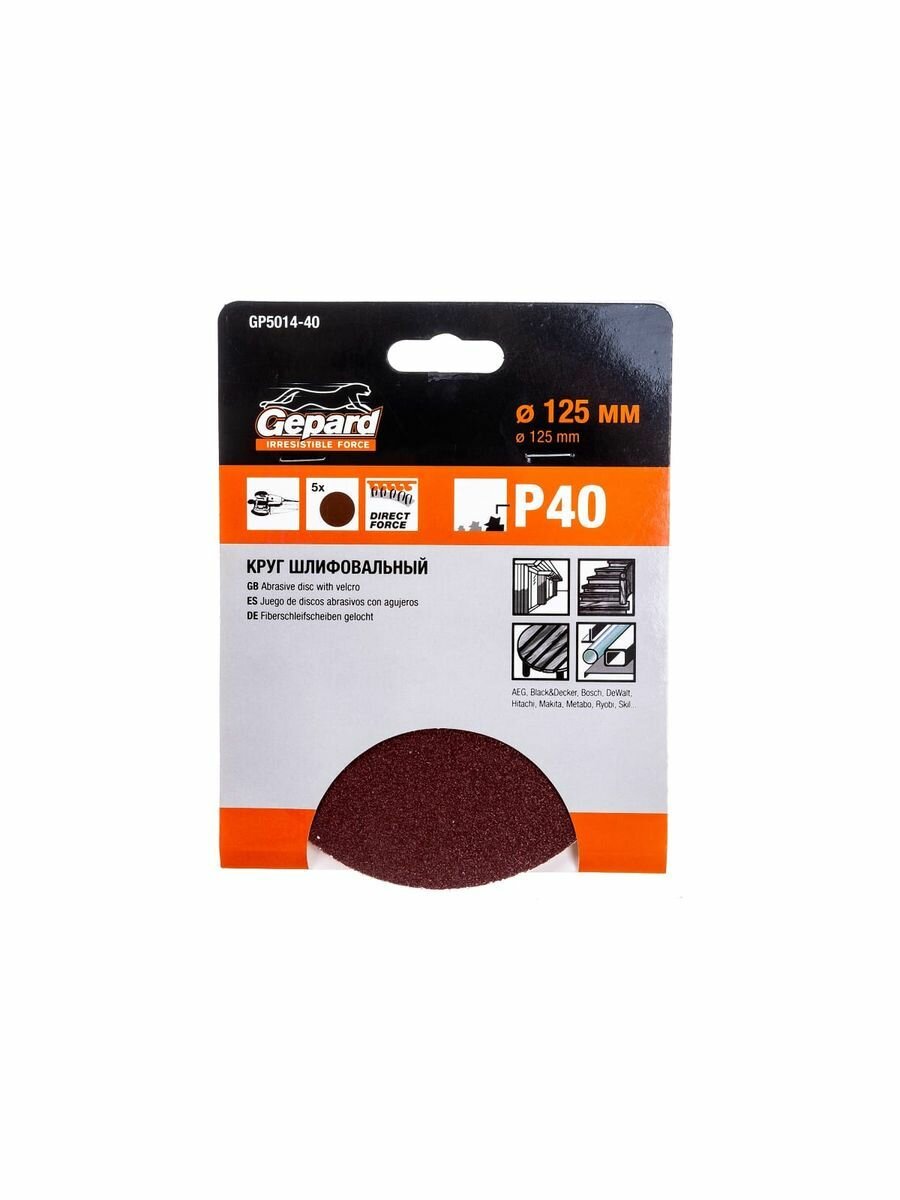 Шлифлист круглый самосцепляющийся 125 мм Р40 GEPARD 5 штук (GP5014-40)