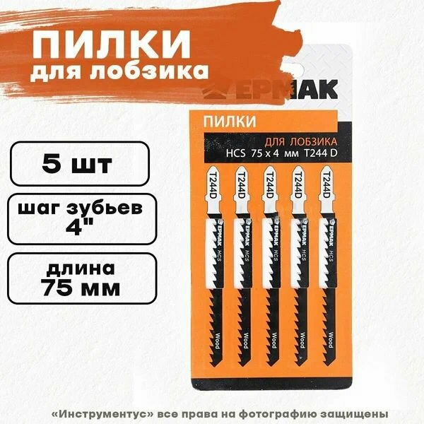 Пилки для эл.лобзика (HCS EU 75х4мм.) Ермак, T-144D (дер., быст.рез.), 5шт. интересное: