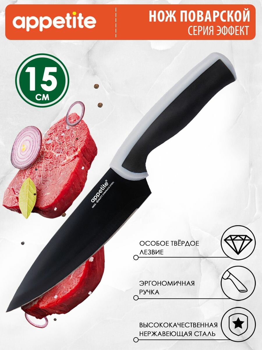 Купить Нож из нержавеющей стали Эффект поварской 15см серый ТМ Appetite