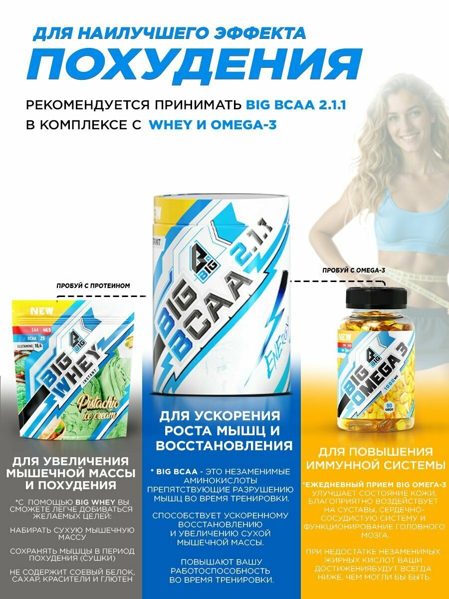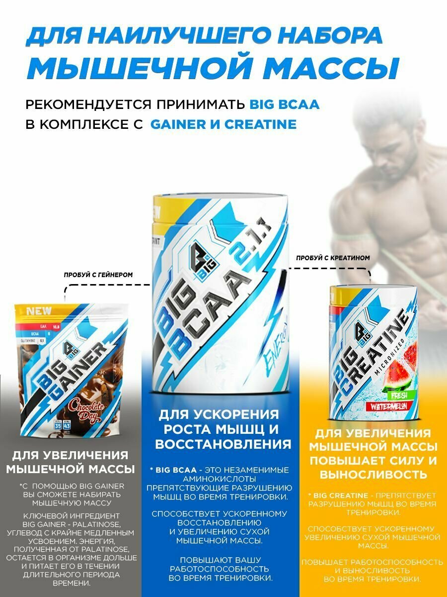 Купить BCAA 2:1:1 BIGSNT/ комплекс аминокислот для роста мышц / порошок, 400 грамм (80 порций), вкус Энергетик