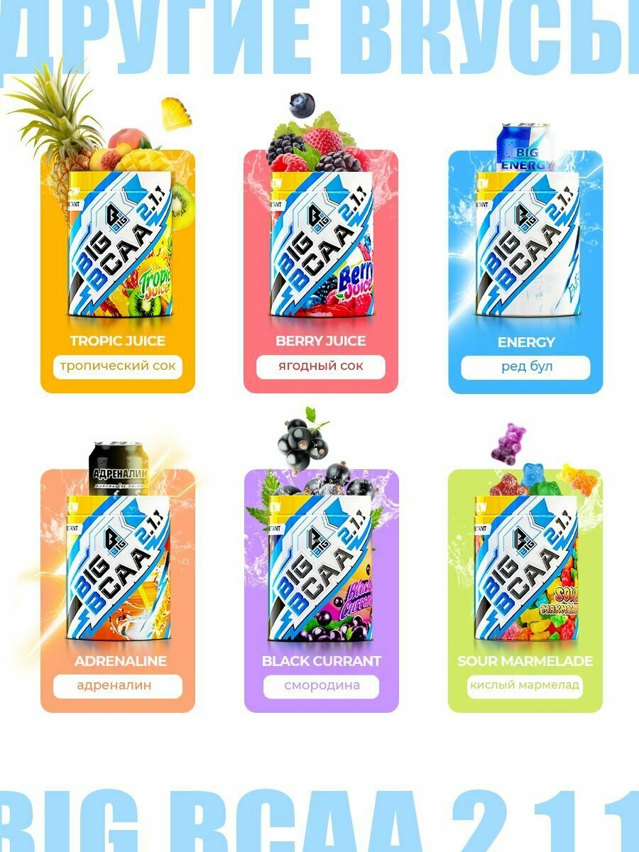BCAA 2:1:1 BIGSNT спортивное питание / комплекс незаменимых аминокислот для роста мышц, порошок, 400 г (80 порций), вкус Энергетик
