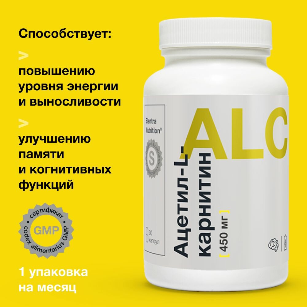 Ацетил-L-карнитин, 450мг, БАД для мозга и памяти, 60 капсул, Elentra Nutrition интересное: