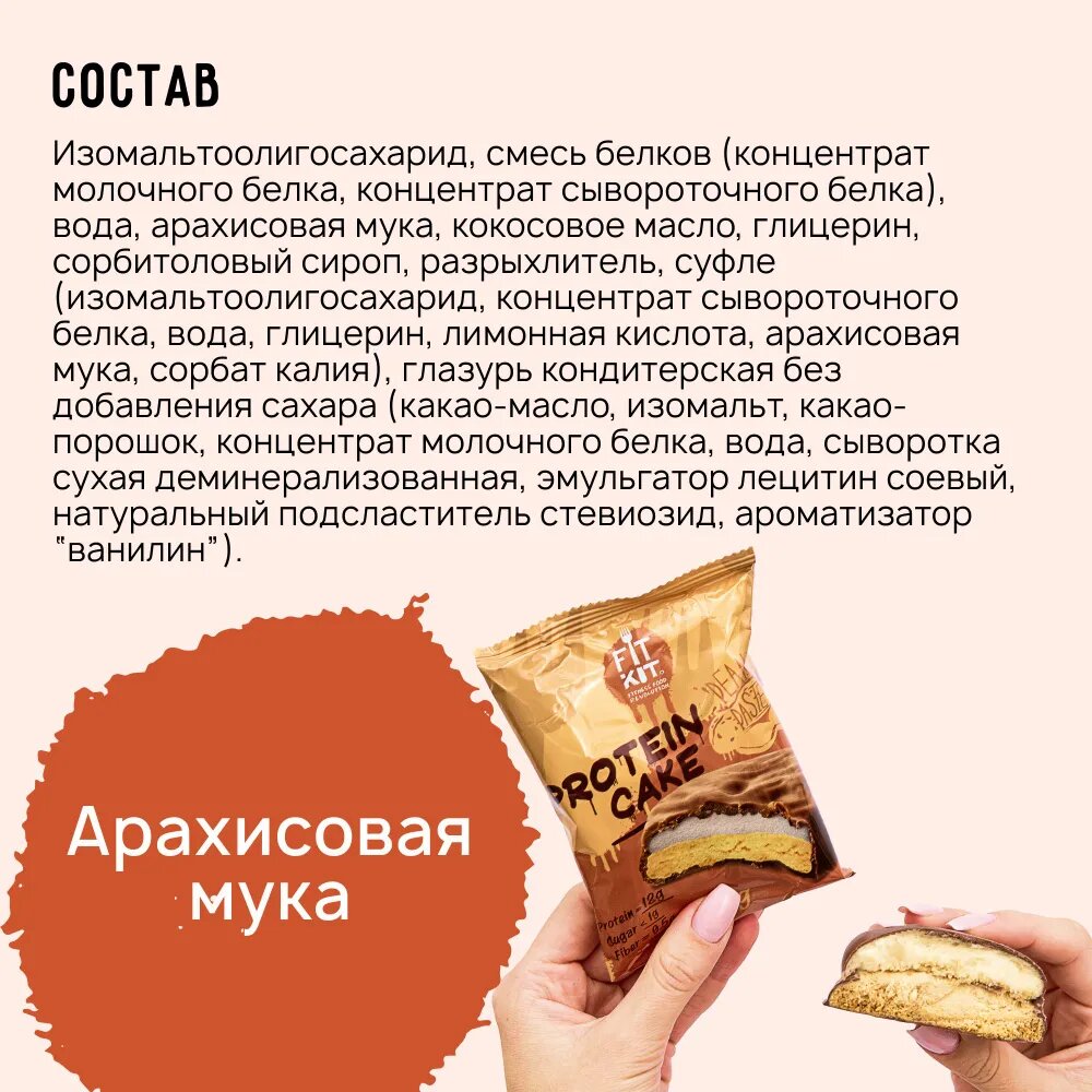 СохранитьПротеиновое печенье FIT KIT Protein Cake, Арахисовая паста (24шт по 70г) интересное: