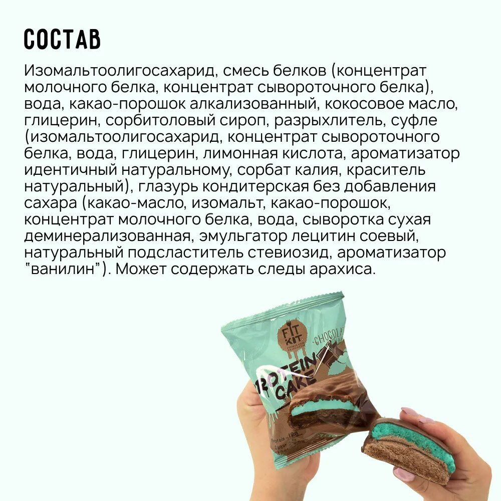 Купить Протеиновое печенье FIT KIT Protein Cake Chocolate Mint "Шоколад-мята" 24 штуки по 70 гр , Фит Кит