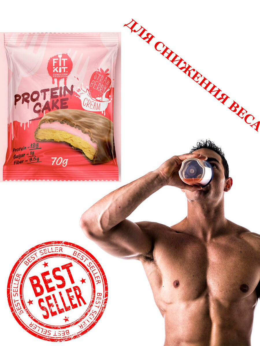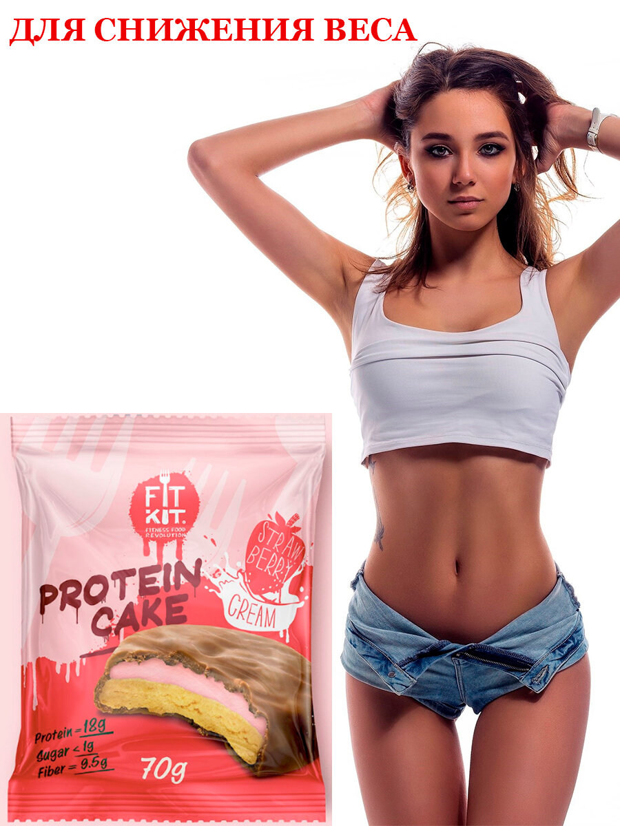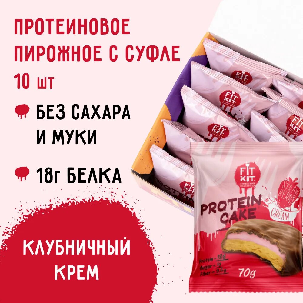 Fit Kit, Protein Cake, упаковка 24шт по 70г (клубника со сливками)